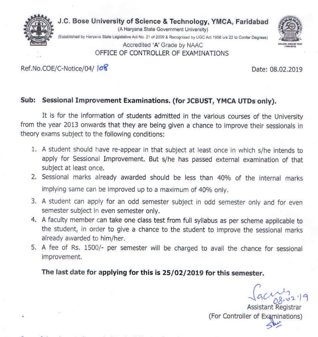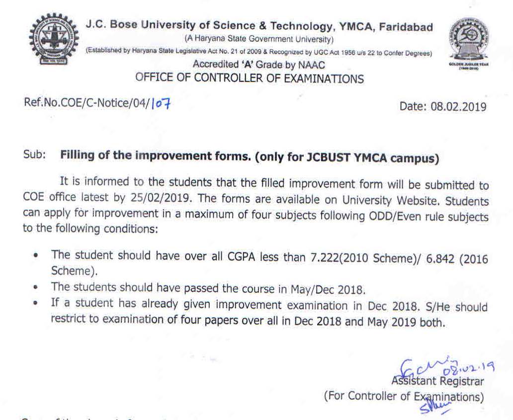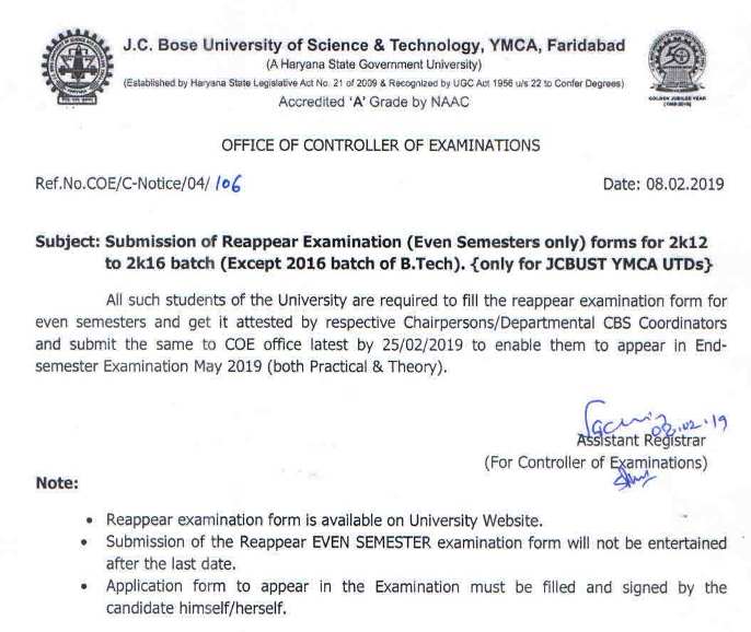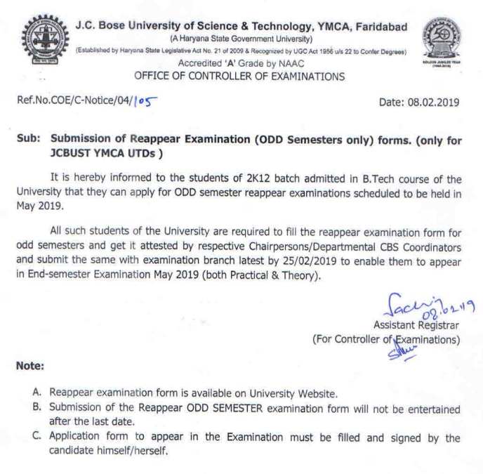 Reappear (ODD & Even),Sessional Improvement & Theory Improvement Forms of May 2019 Exams
