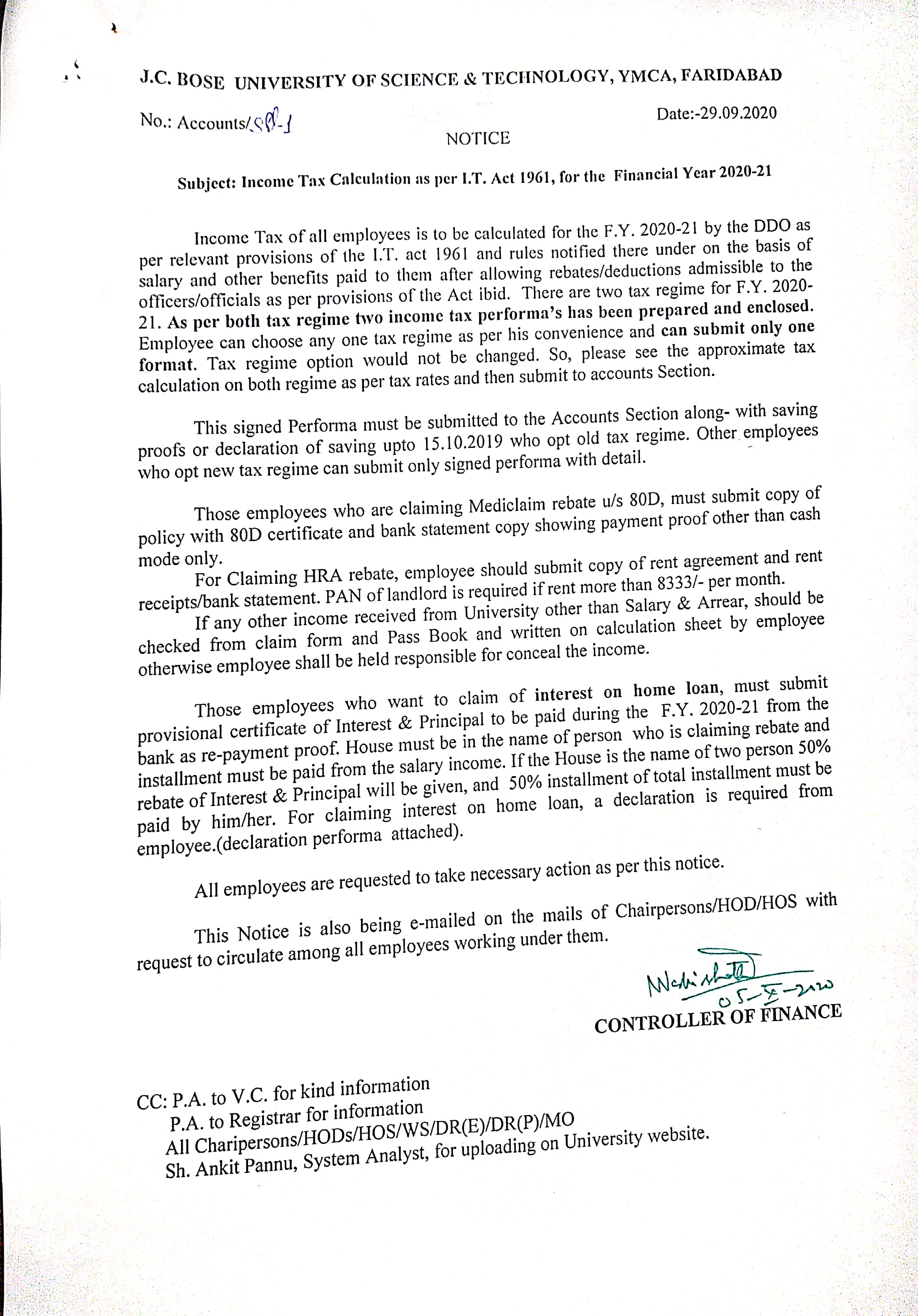 Income Tax Calculation notice for 2020-21