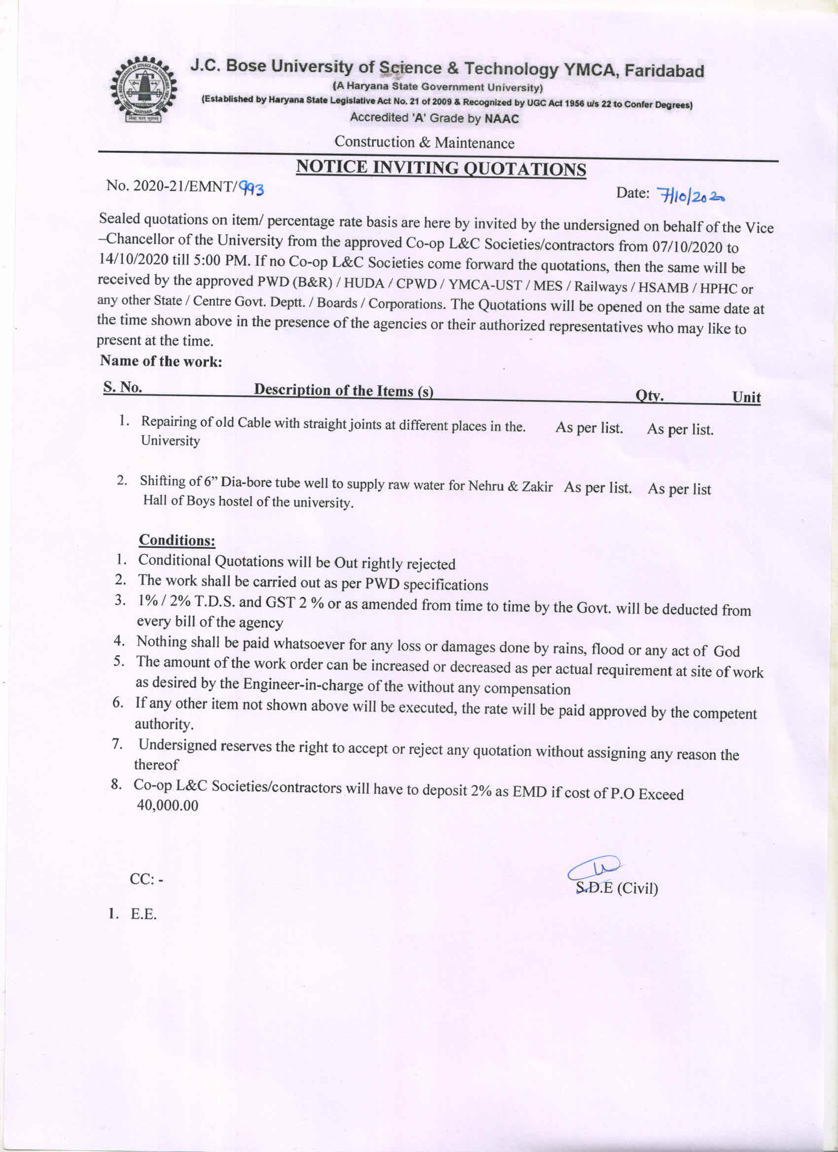 J.C. Bose University of Science and Technology, YMCA Faridabad, Haryana
