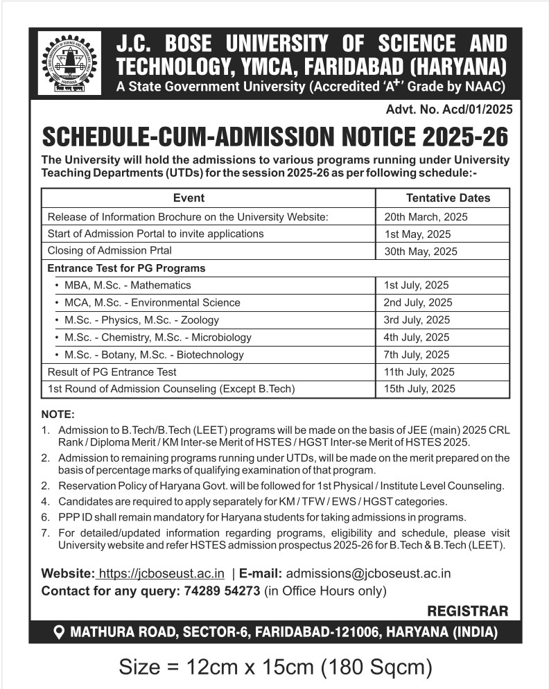 Advertisement for admission schedule 2025-26