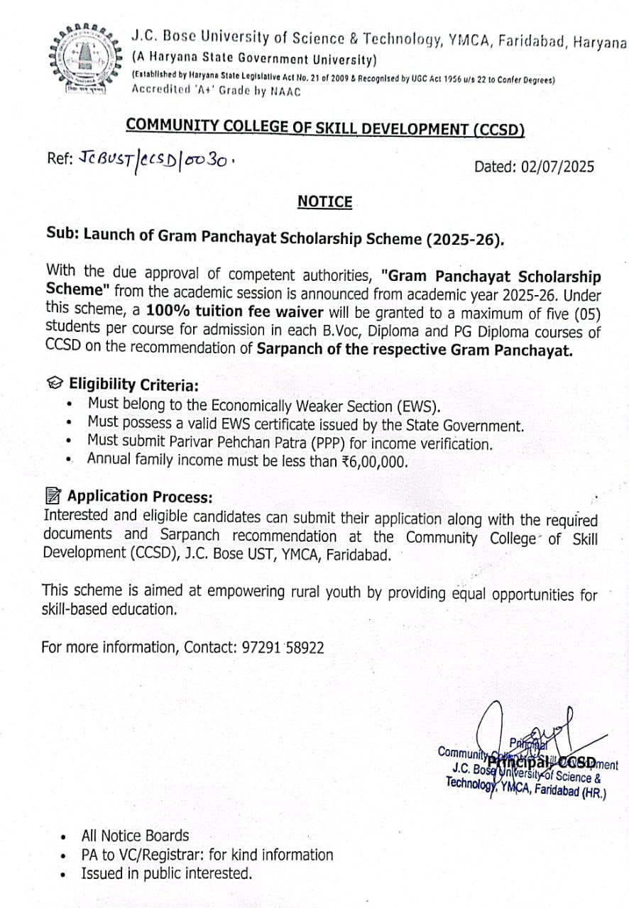 Revised Advertisement for engagement of Guest Faculties in Community College of Skill Development.