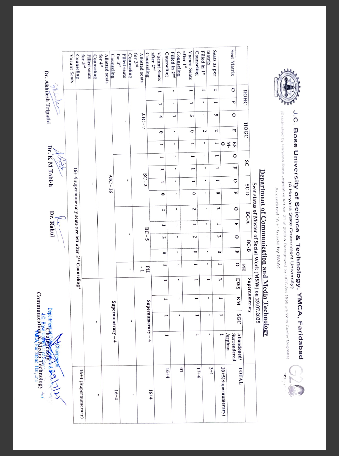 Vacant Seat Status for BA(JMC) - 1st Counseling (Day-1)
