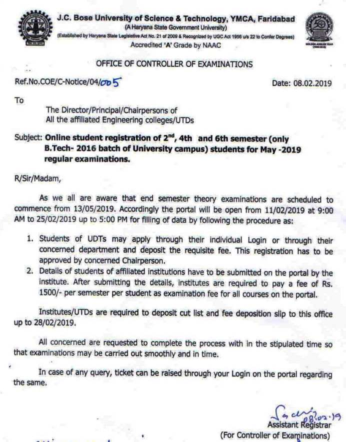 Notice regarding regular online exams forms