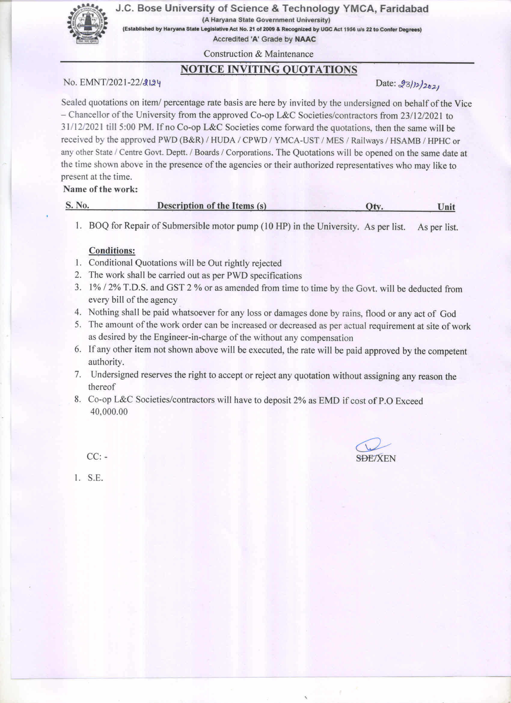 J.C. Bose University of Science and Technology, YMCA Faridabad, Haryana