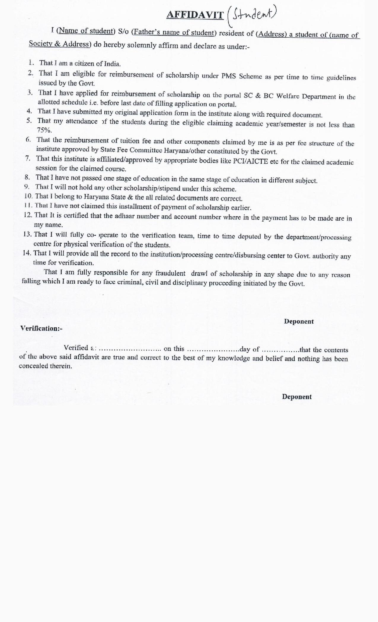 Inviting Applications form in respect of PMS Scholarship of SC & BC students fresh for the Session 2019-20
