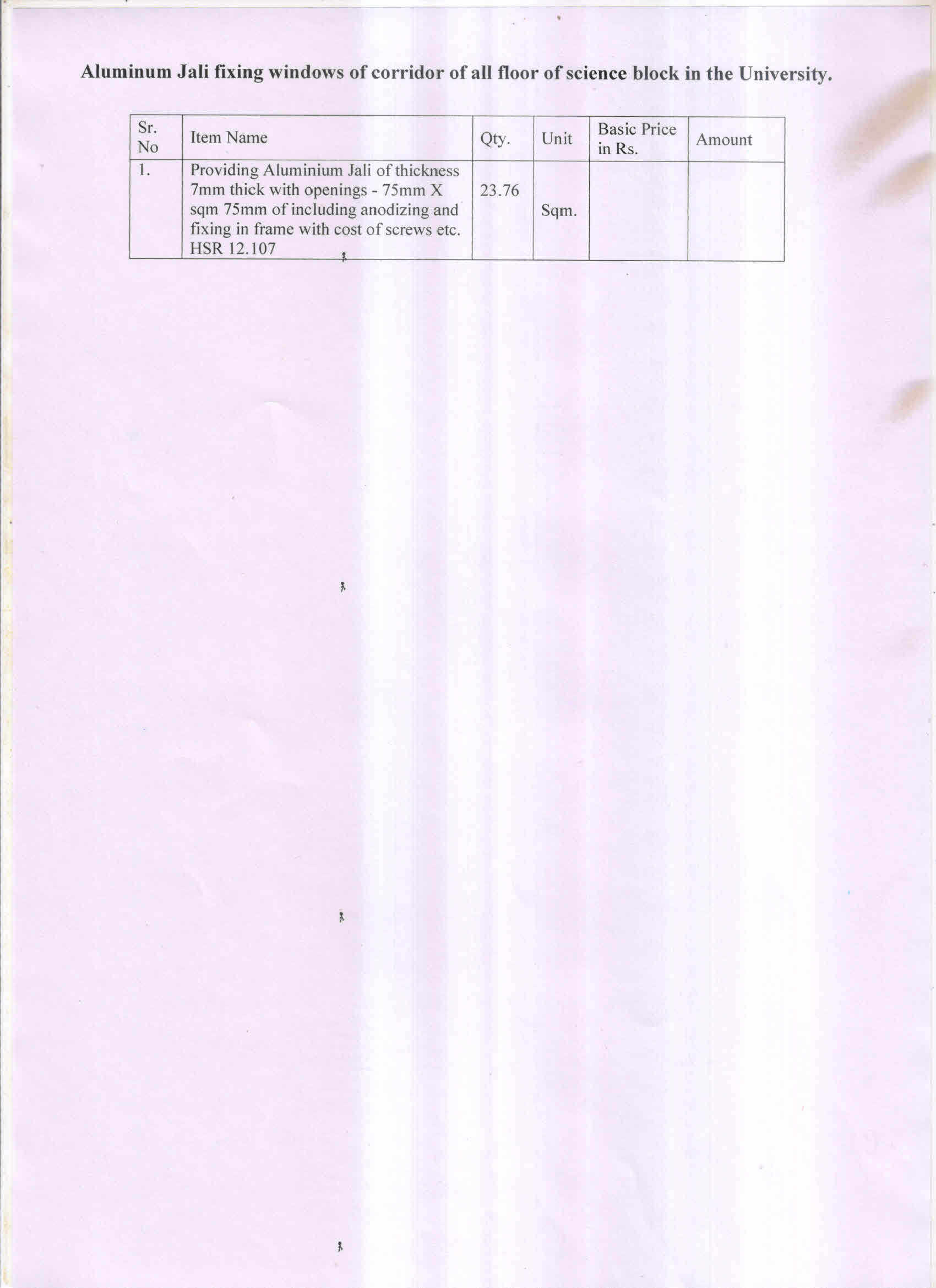 Aluminum Jali fixing windows of corridor of all floor of science block