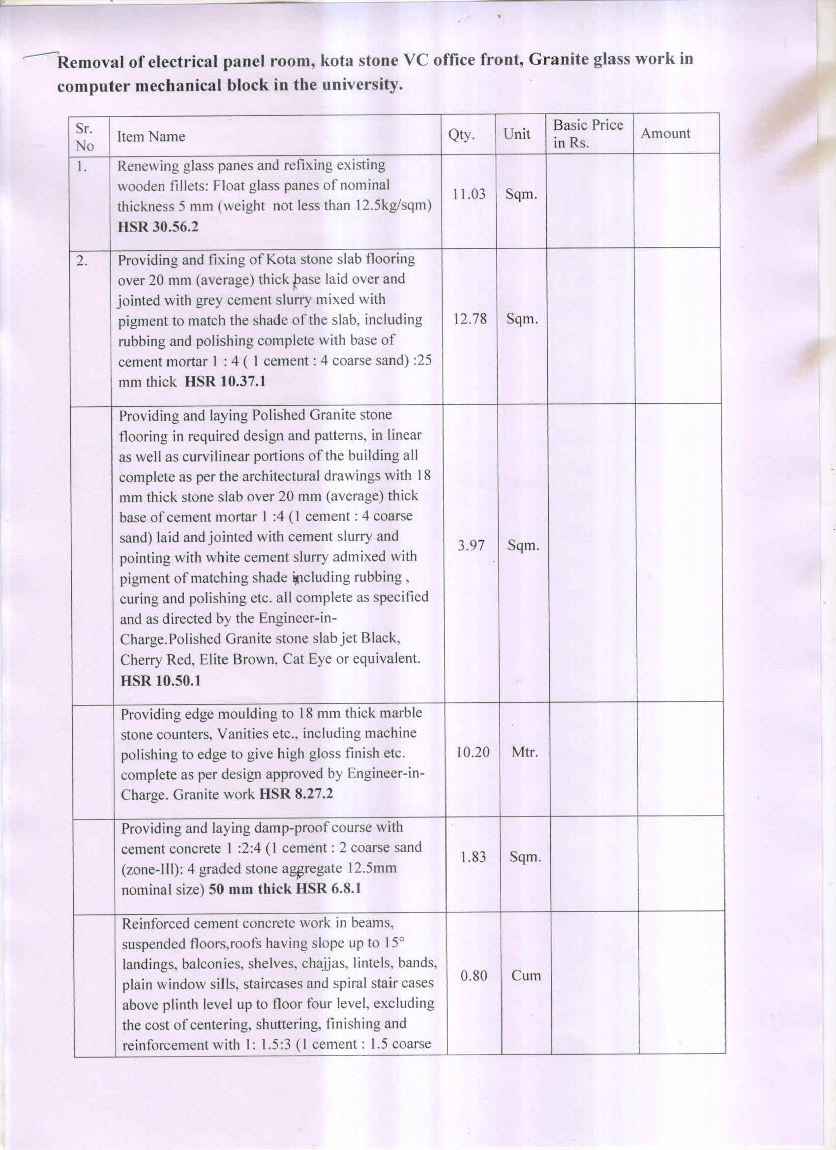 Pf of Aluminum jail & removingreplacing of tiles in MBA Block & VC office