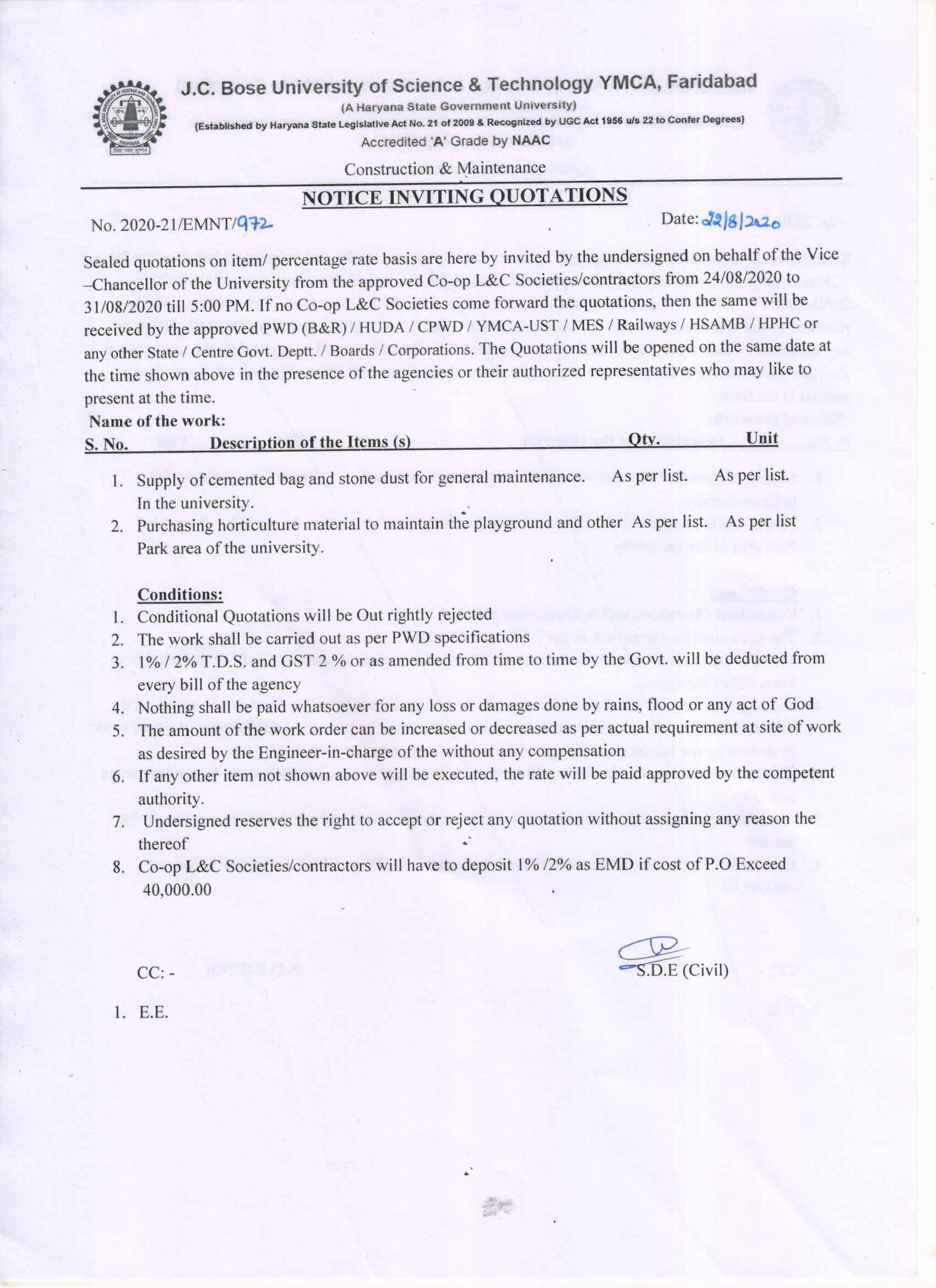 J.C. Bose University of Science and Technology, YMCA Faridabad, Haryana