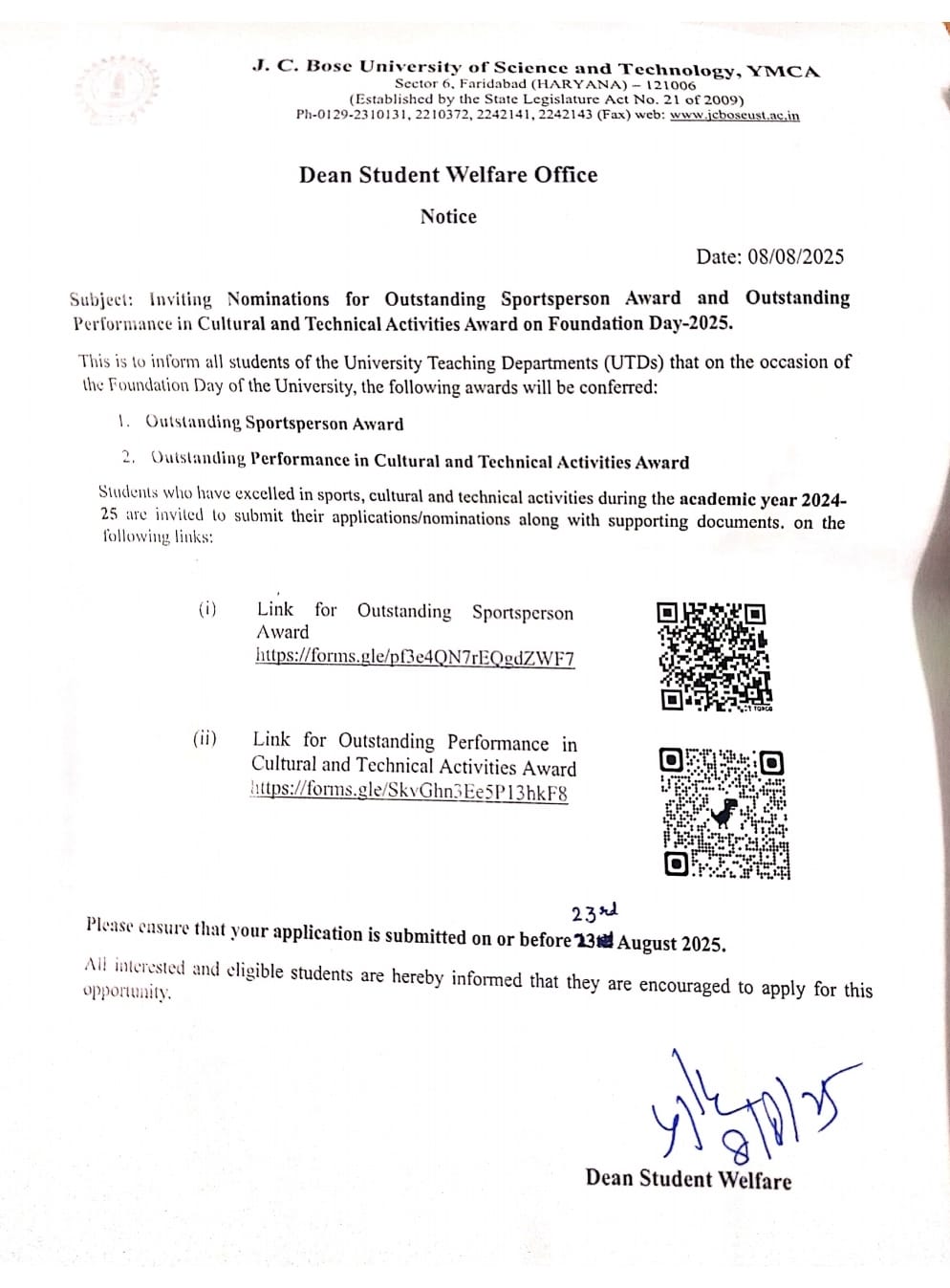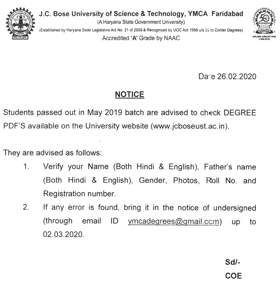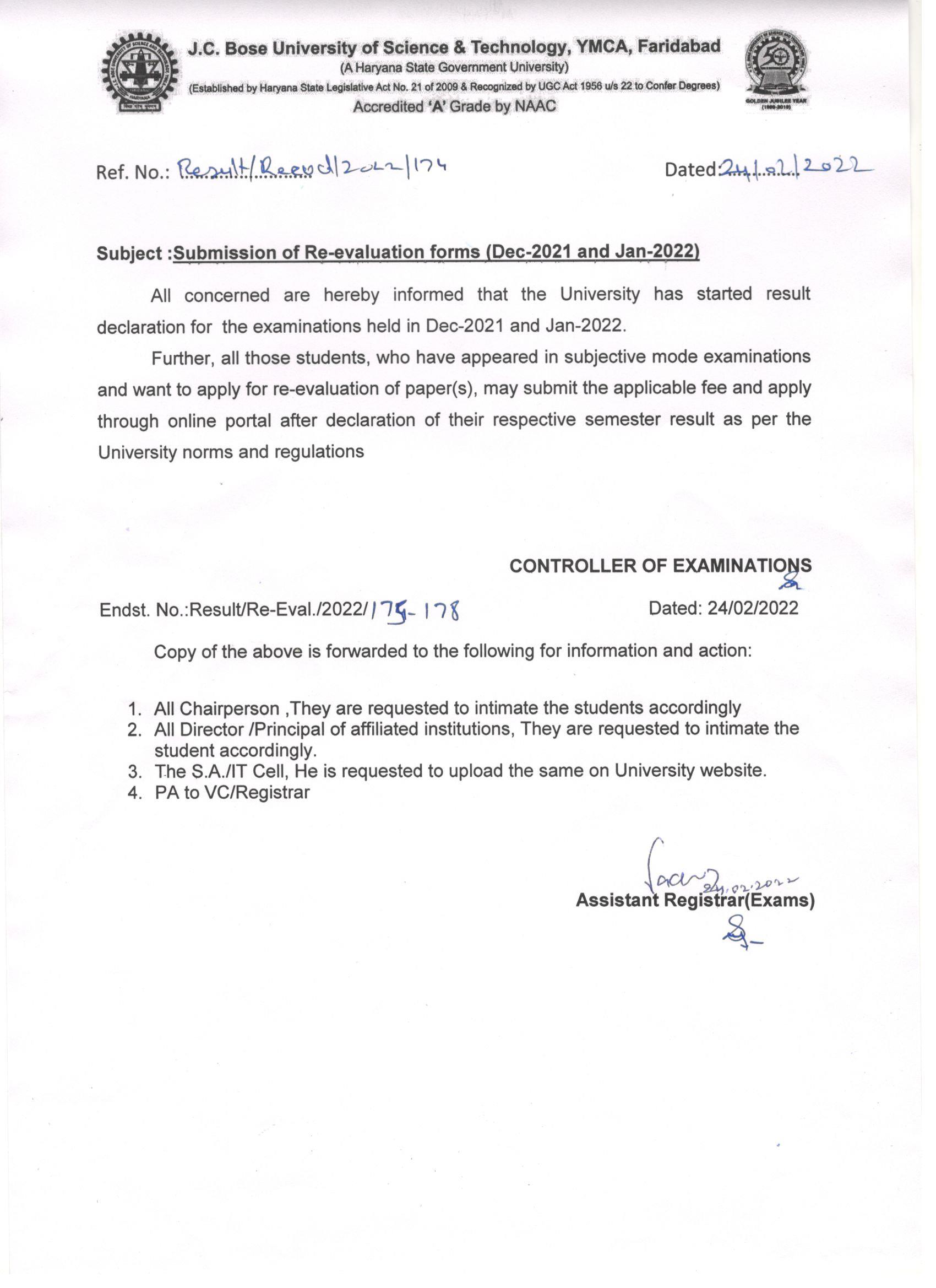 Notice regarding reappear online exams forms