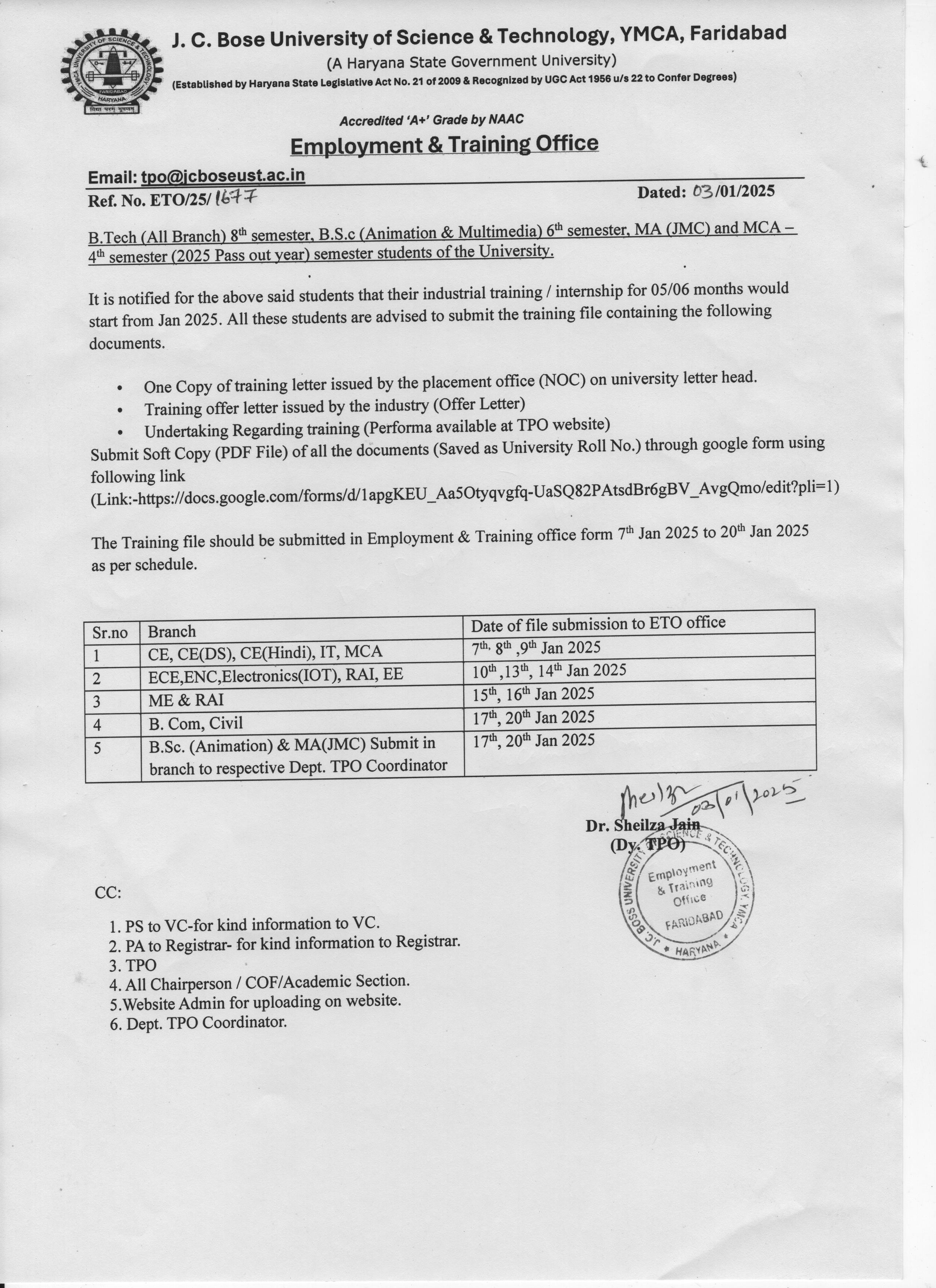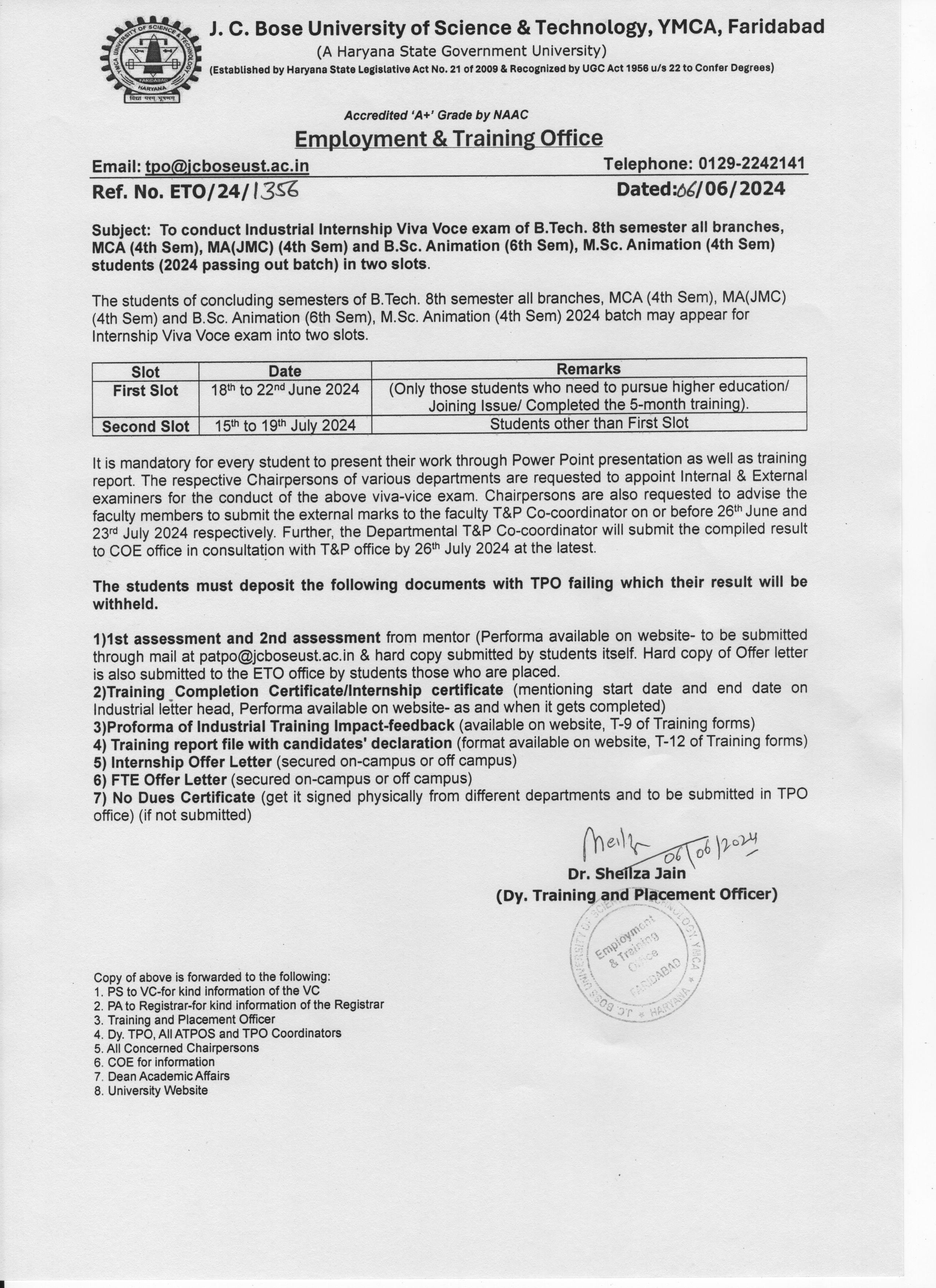 Advt No 3/2019 for the post of Deputy Registrar (Training & Placement)