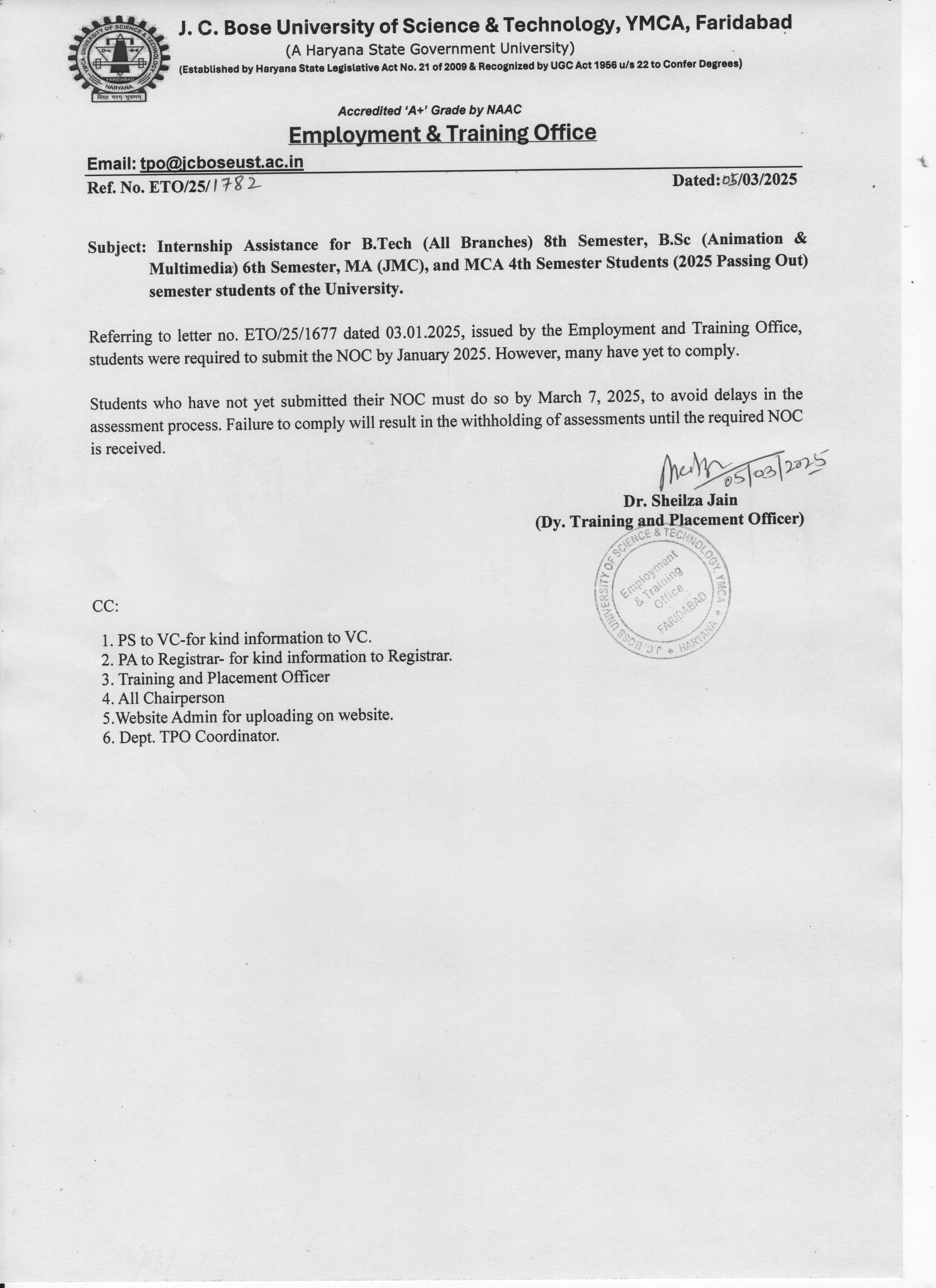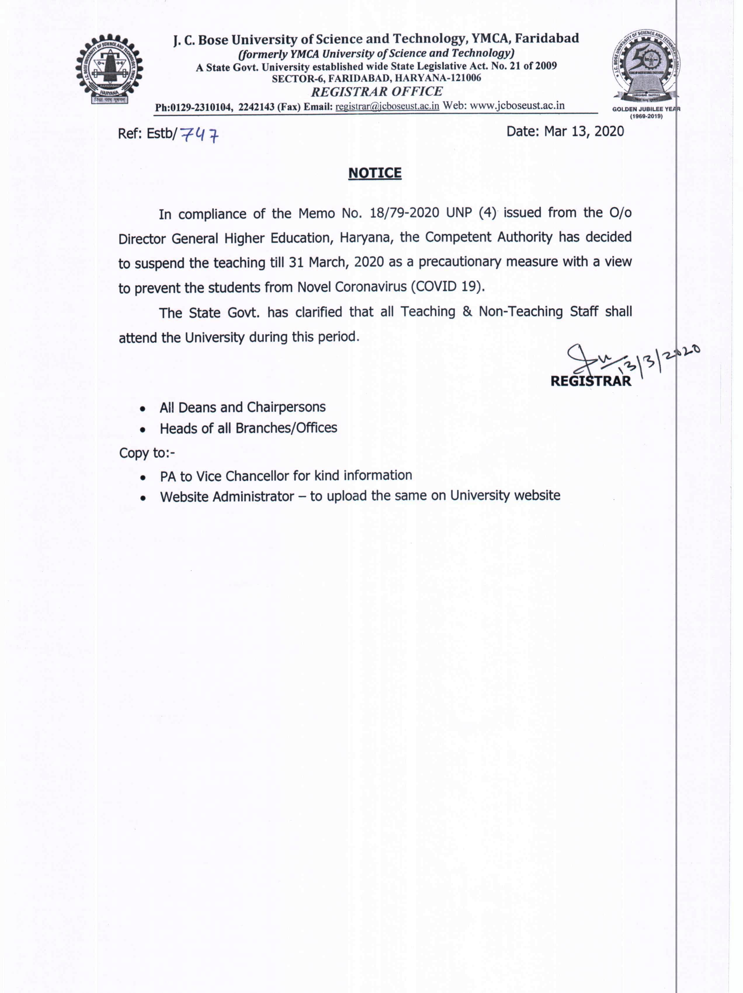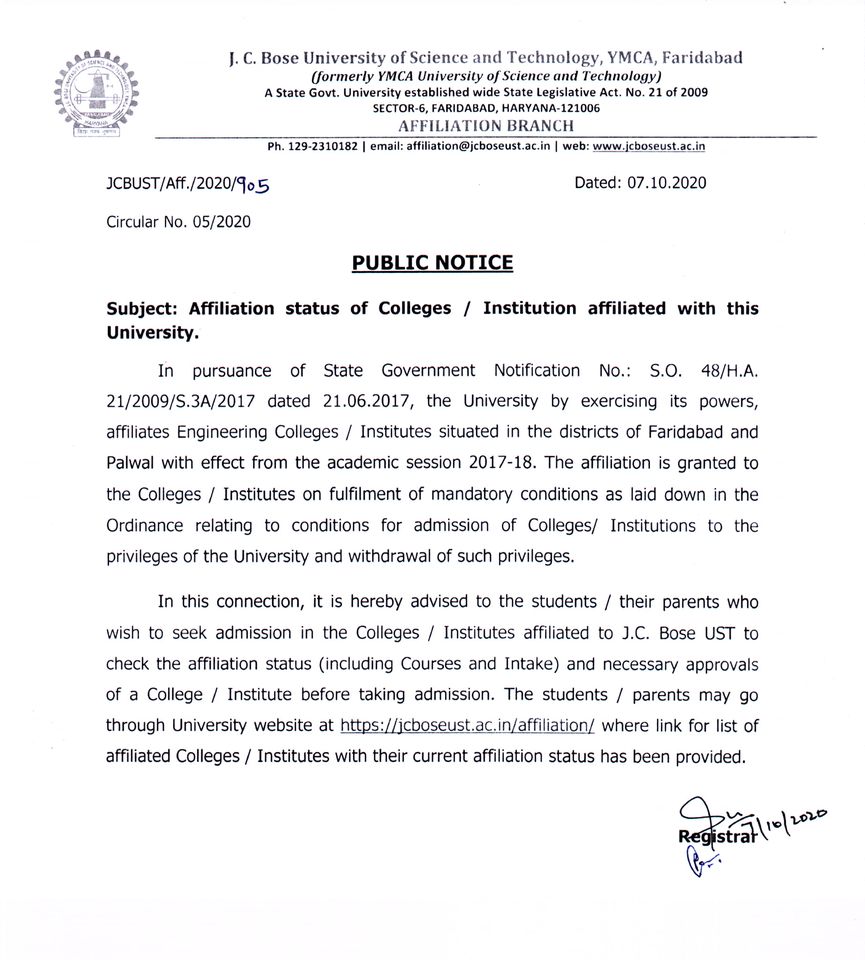 Corrigendum: Clarification regarding the detainment of student namely Khushi Roll No.24001323018 B.Sc. Mathematics (3rd Sem)