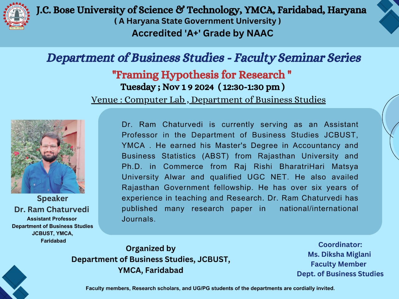 Final Ph.D. Viva Voce of Mr.Vishal Gupta, Regn No.19-YMCA-902013) on 5.12.2025 at 3.00 PM