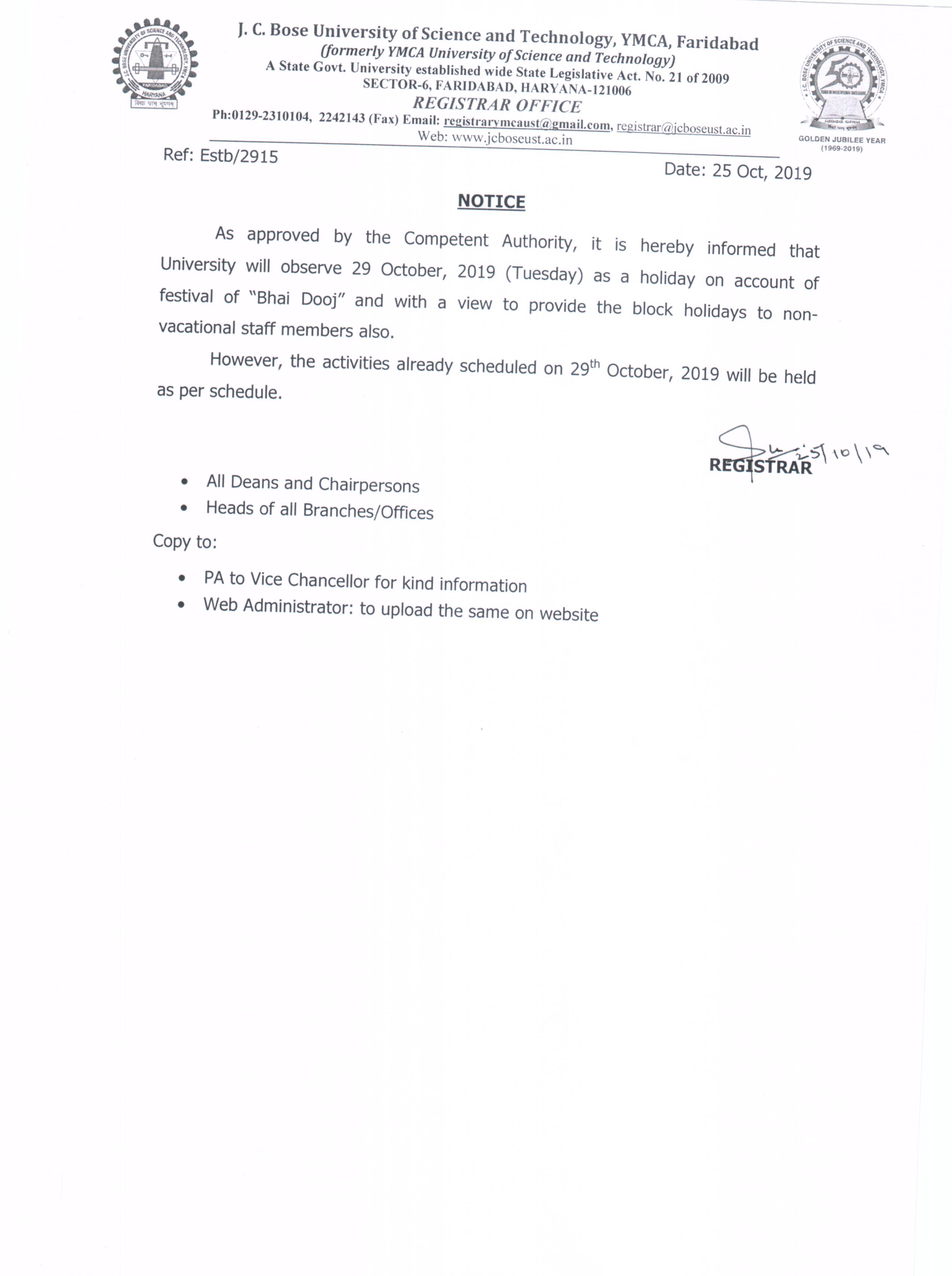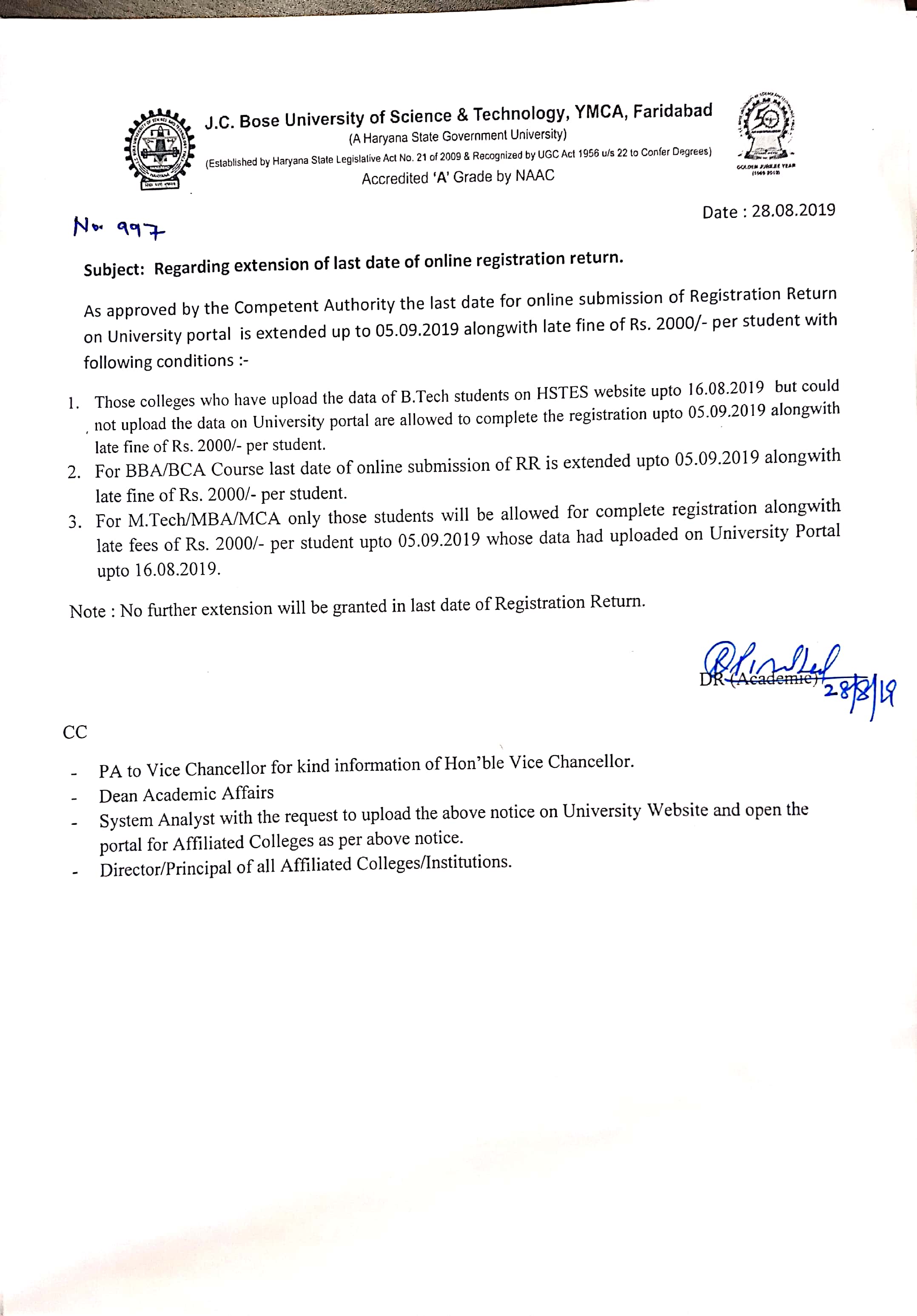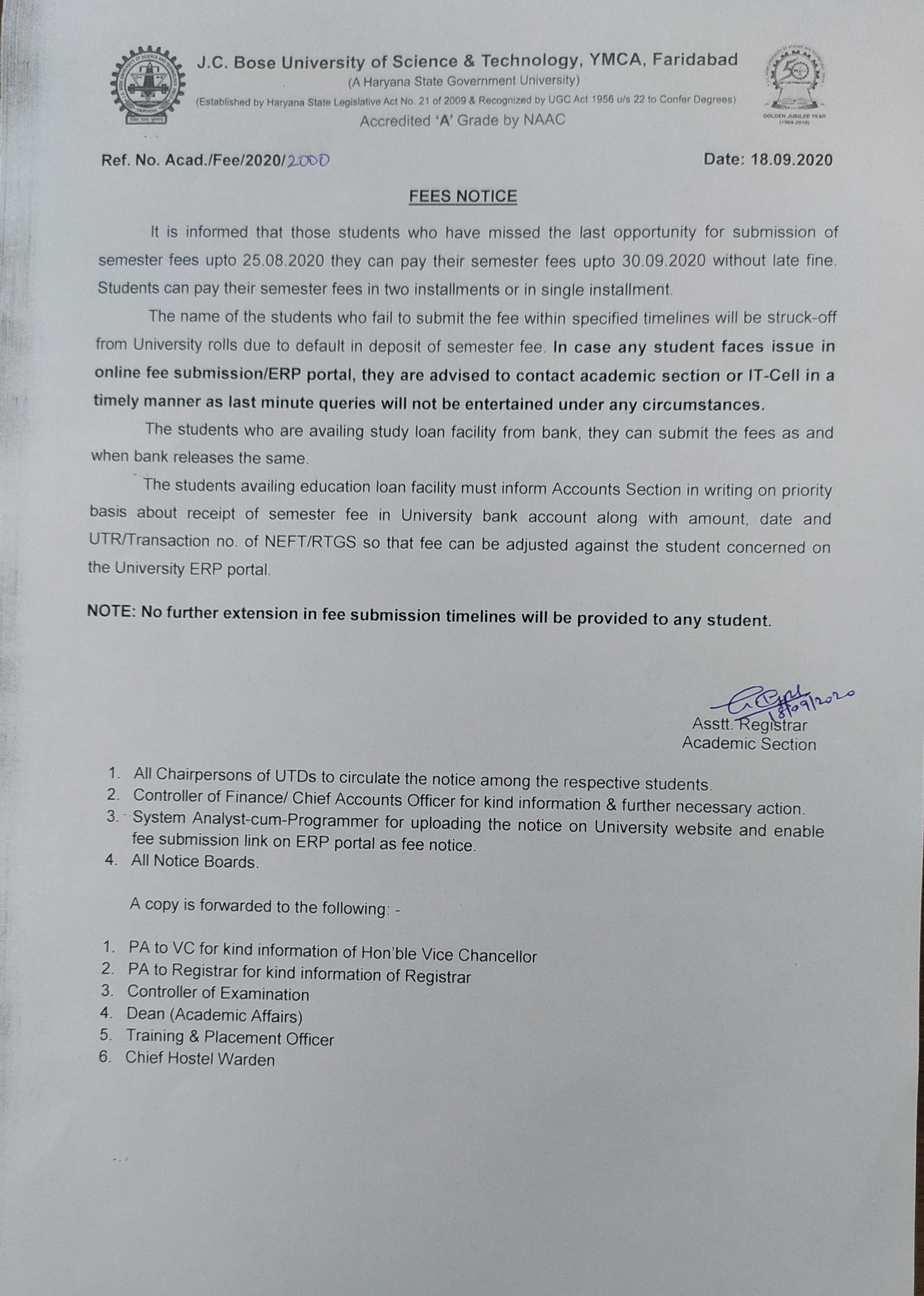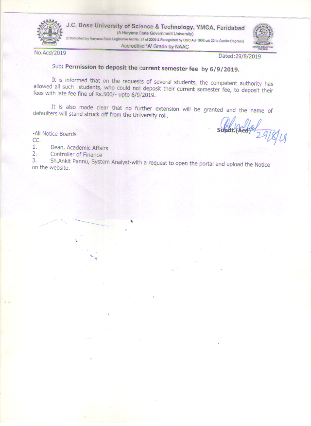 Last date Extension of Ph. D. Admission Fee upto 28.11.2025