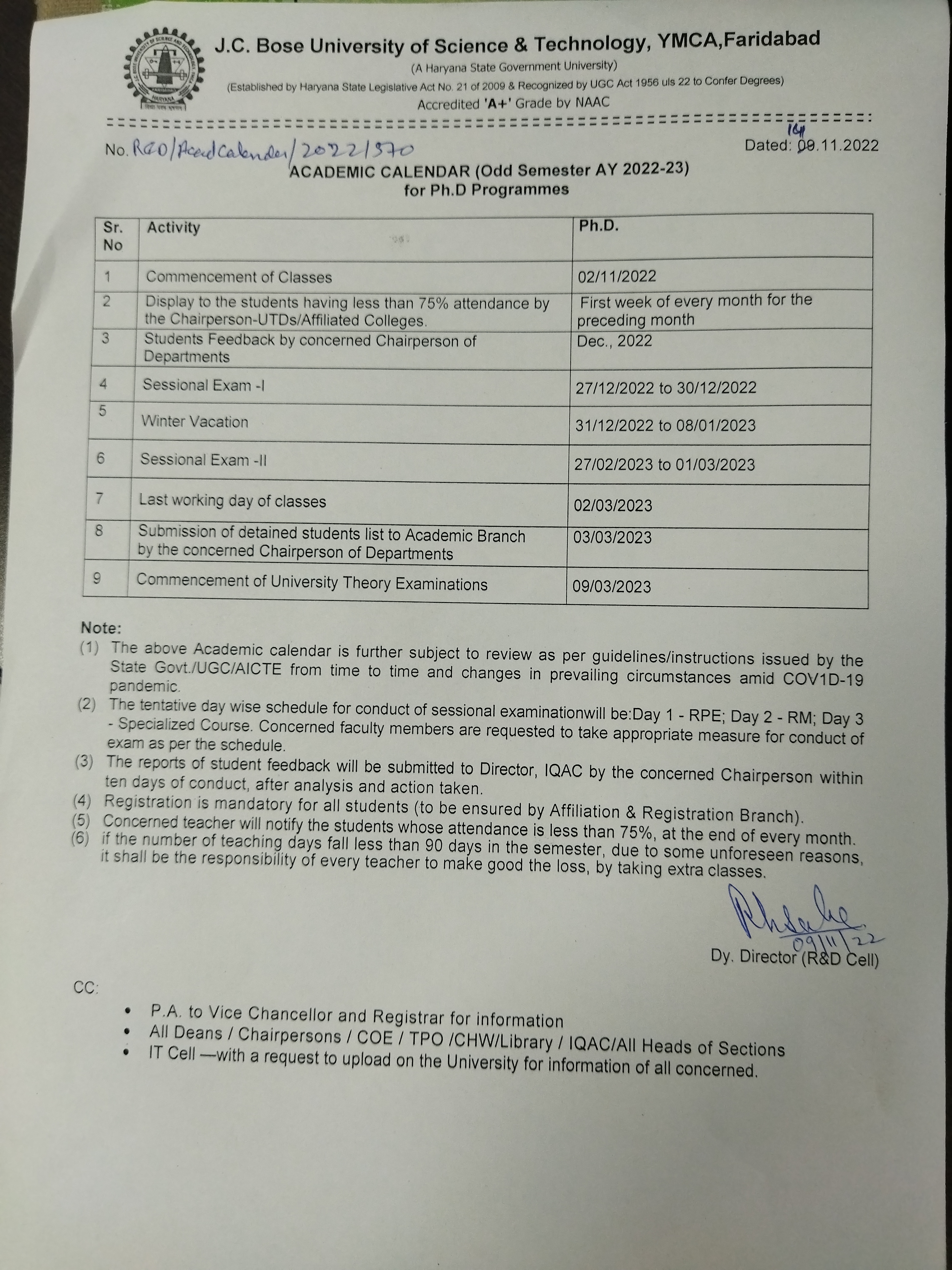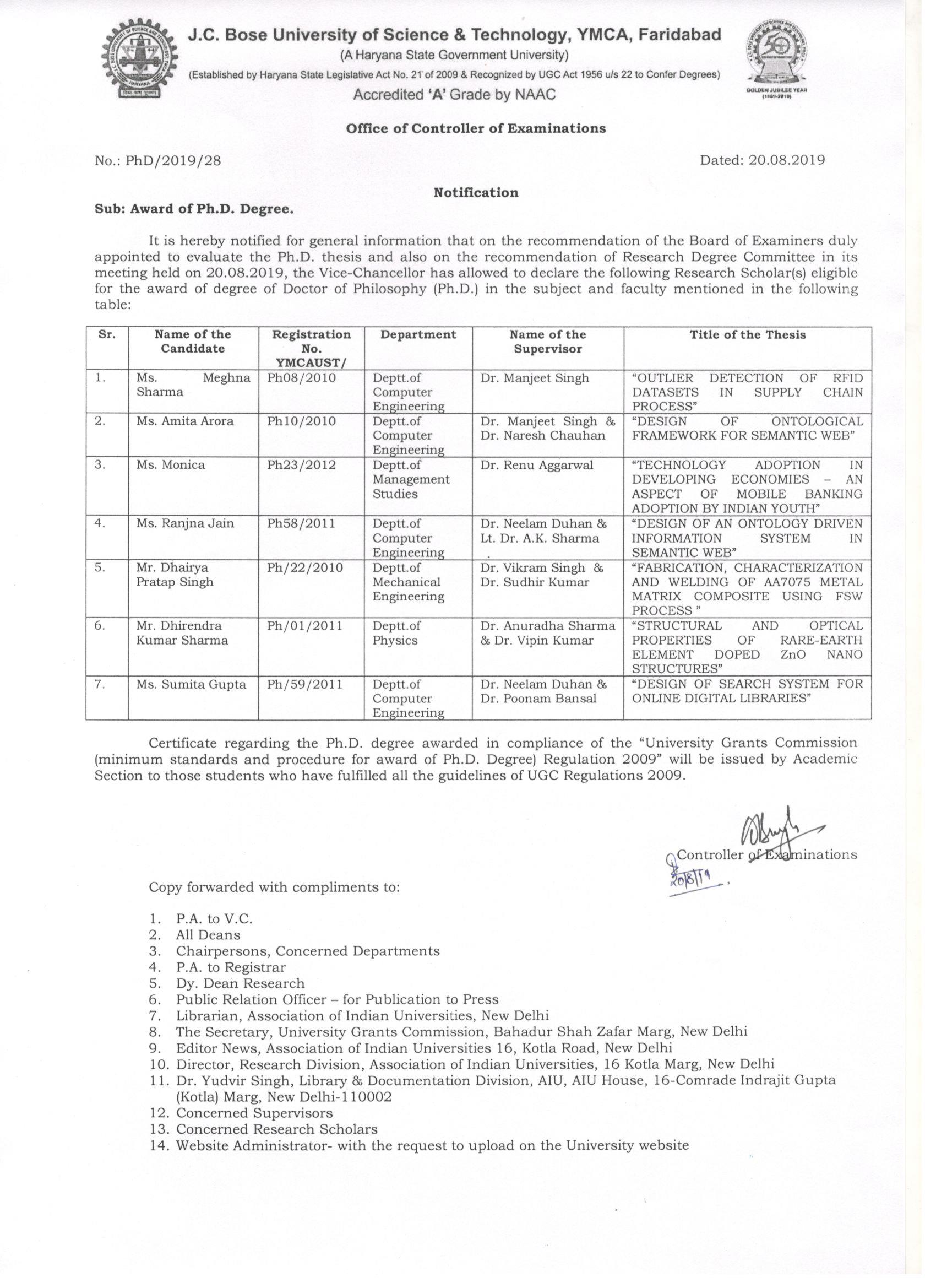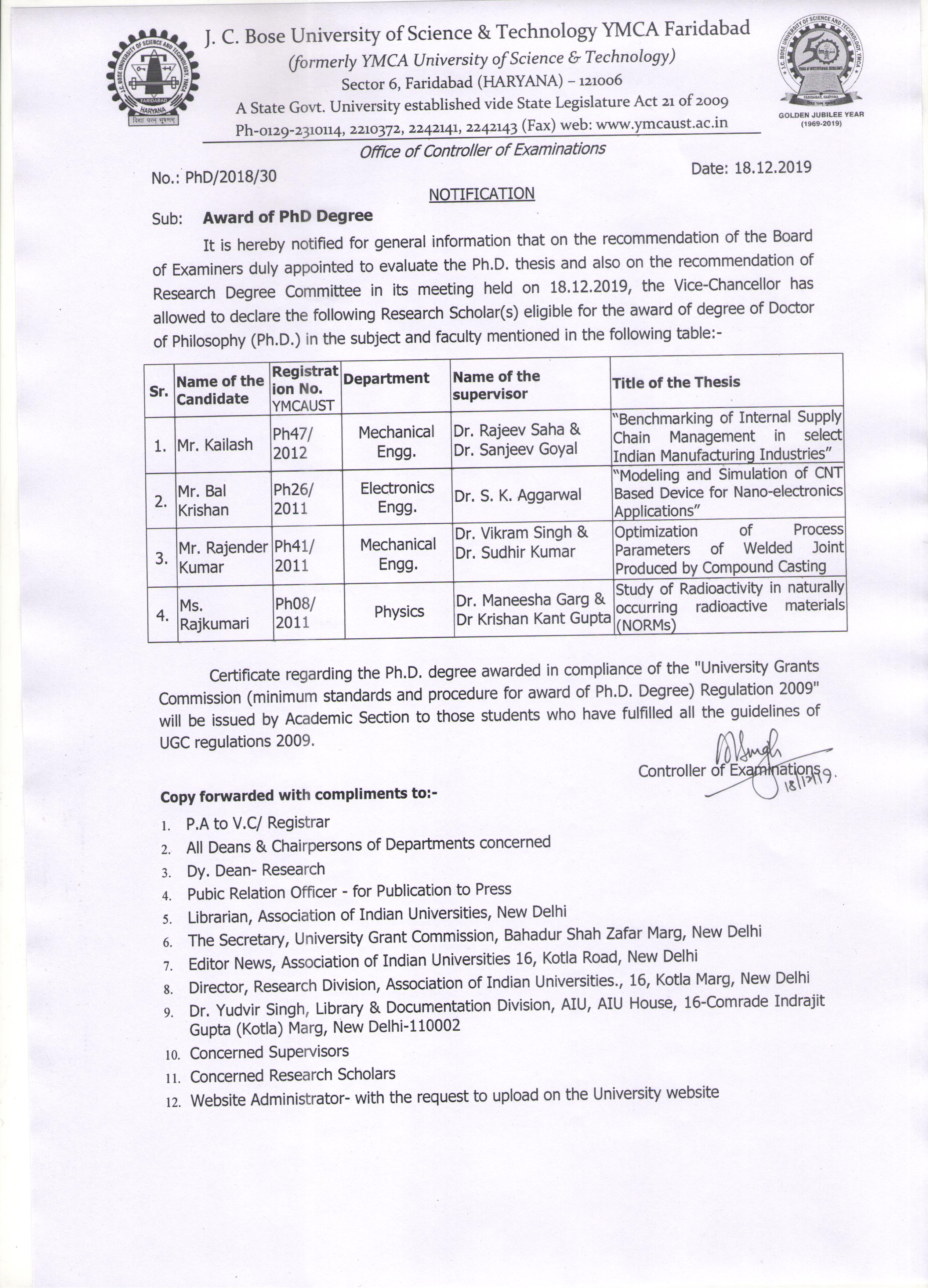 Award of PhD Notification