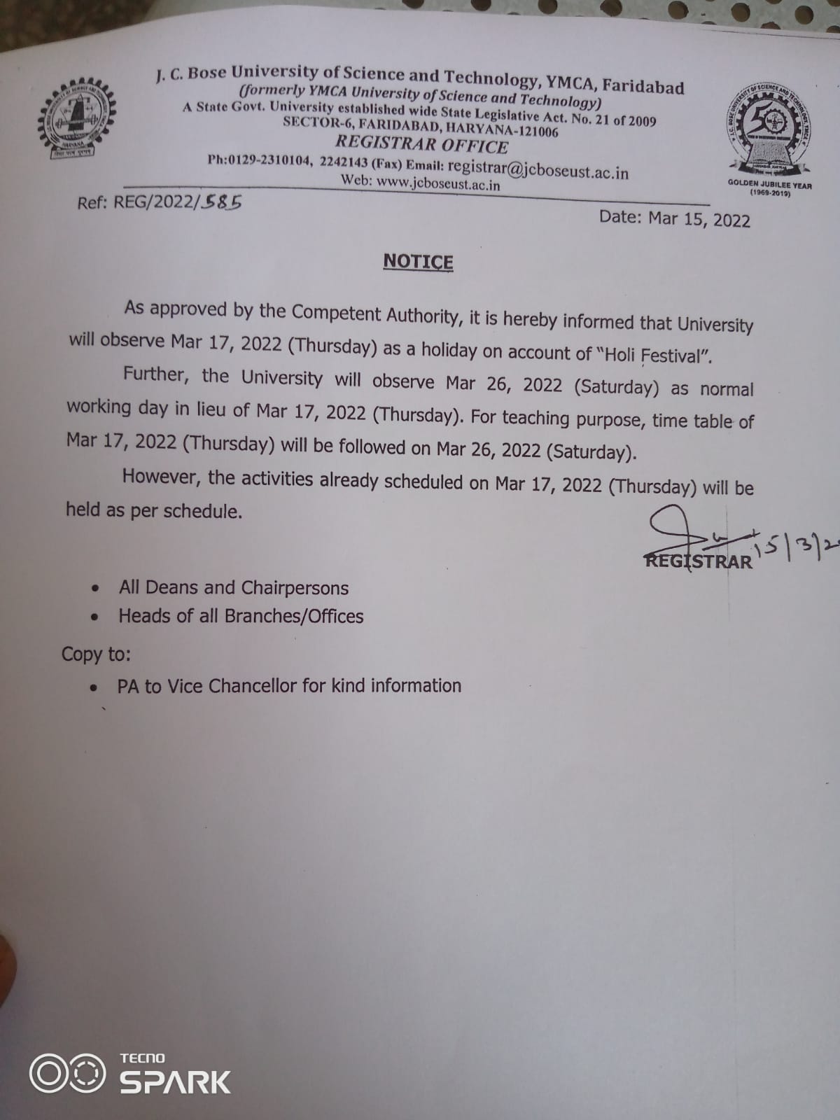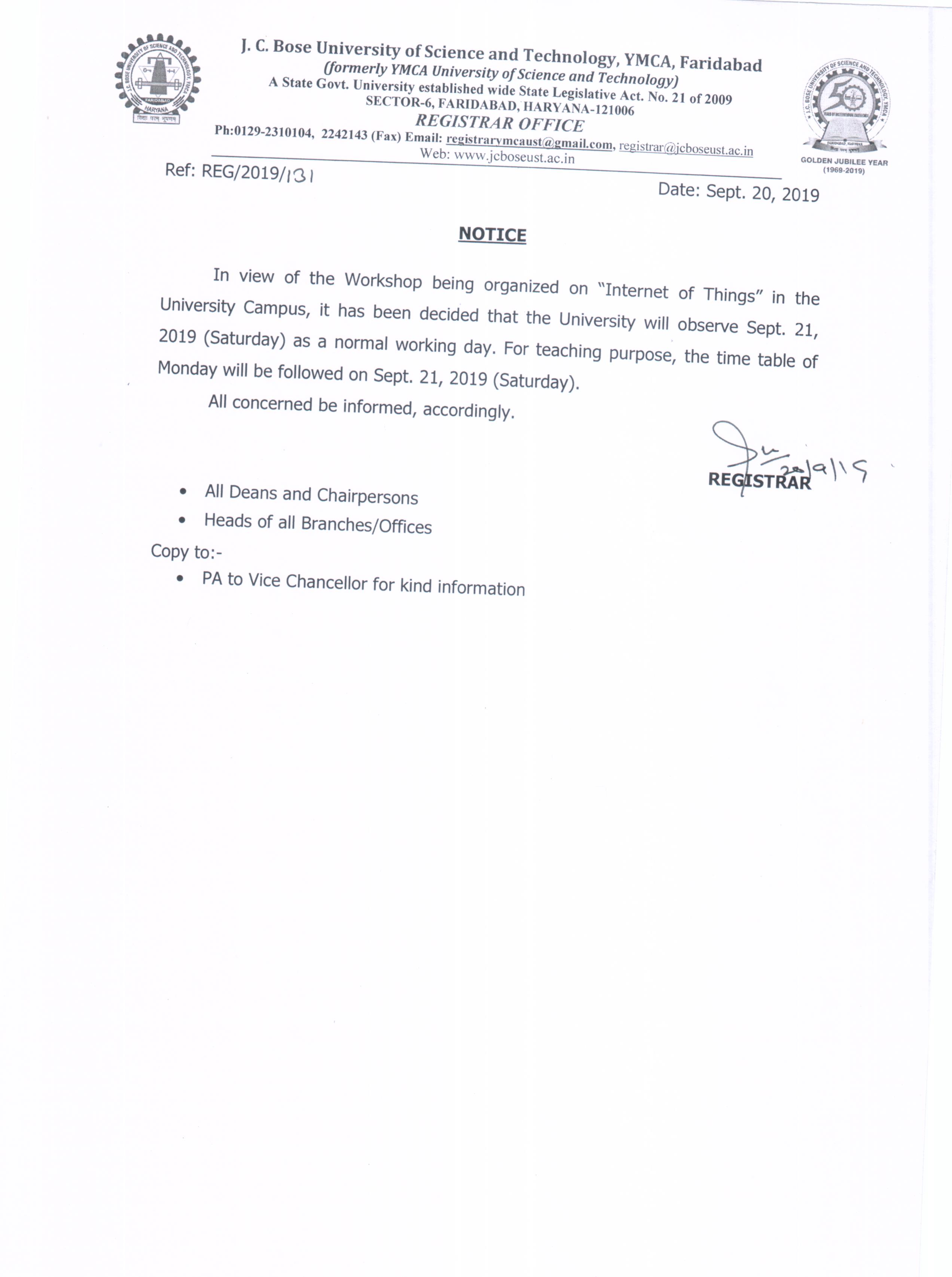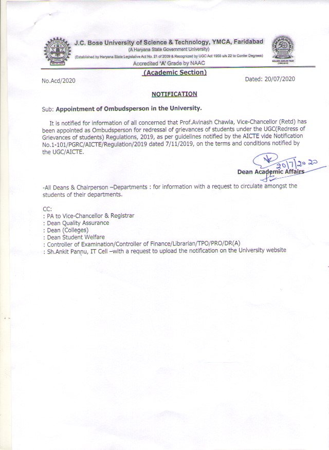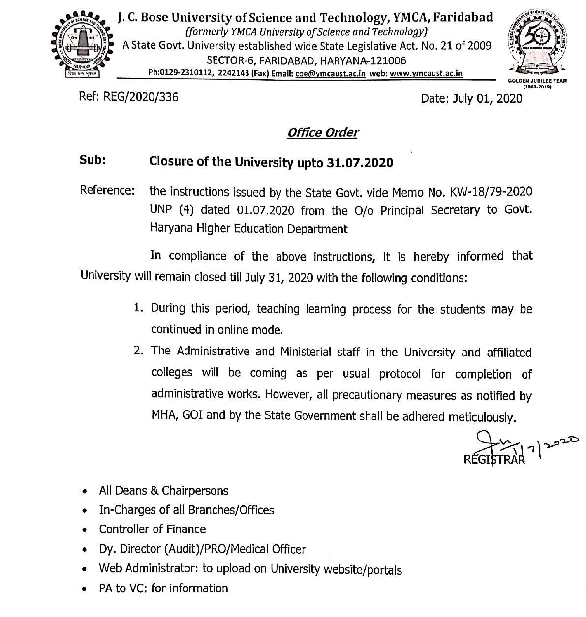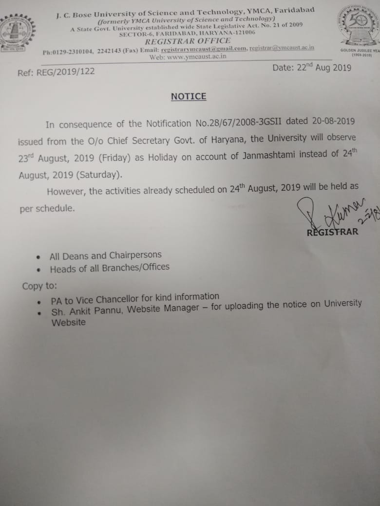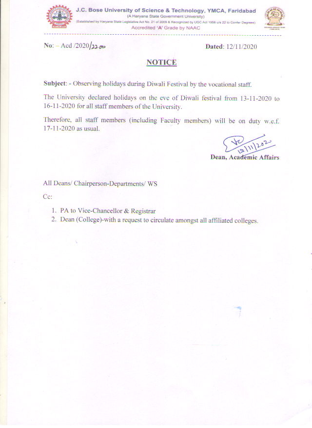 Modification of VC Office and Waiting area in the J.C. Bose University of Science & Technology, YMCA Faridabad