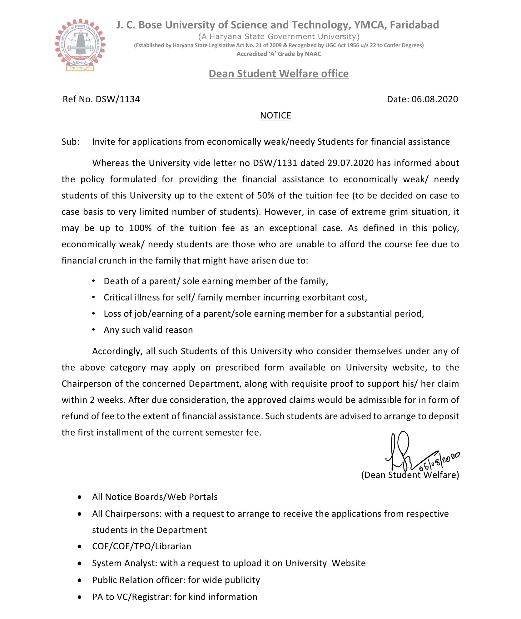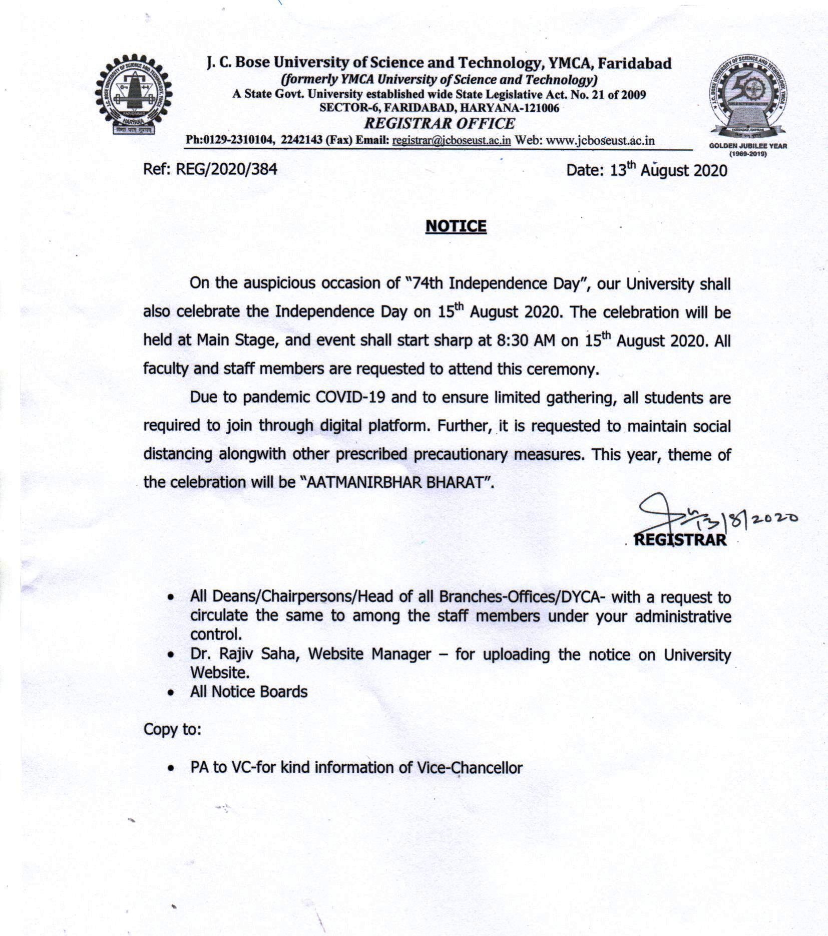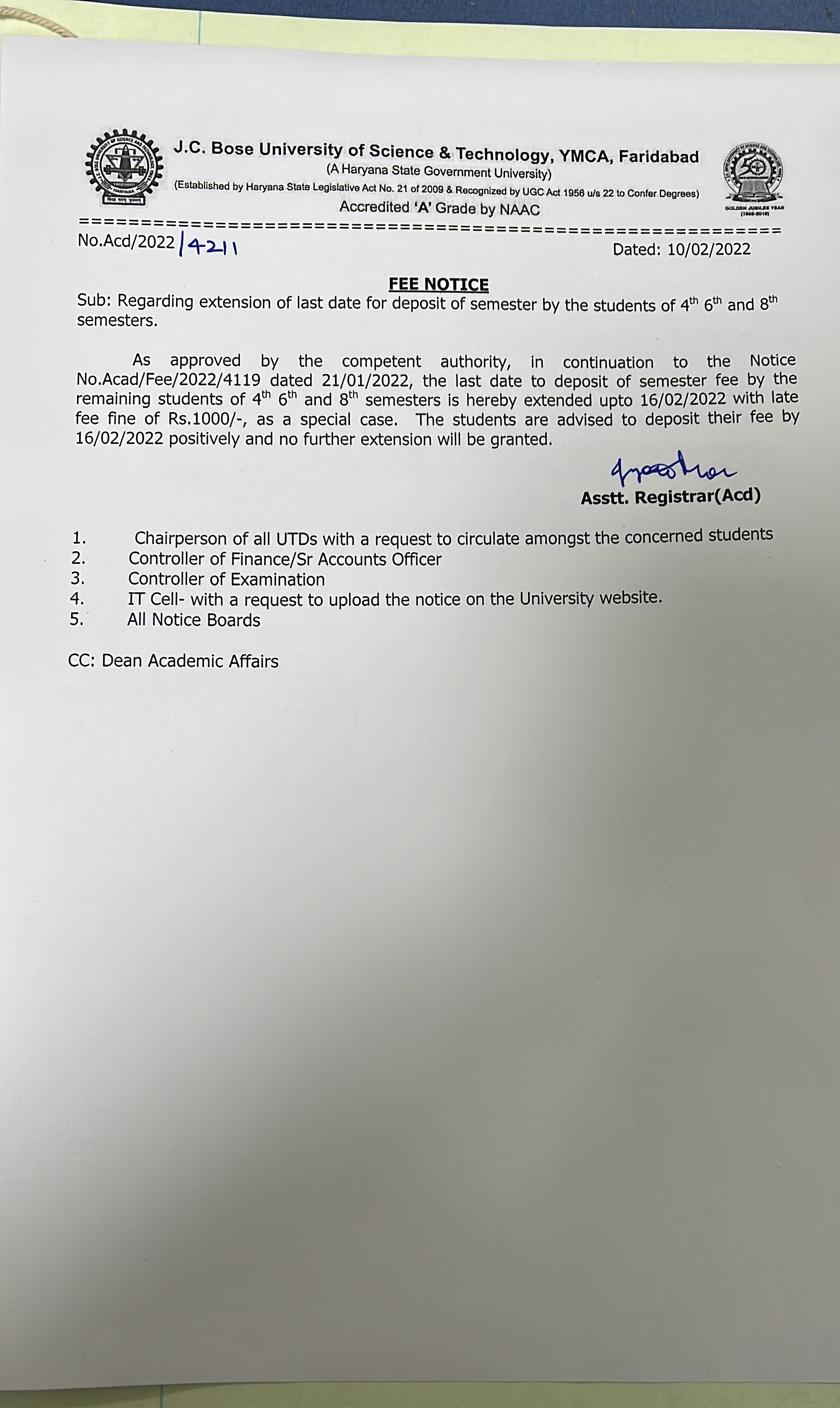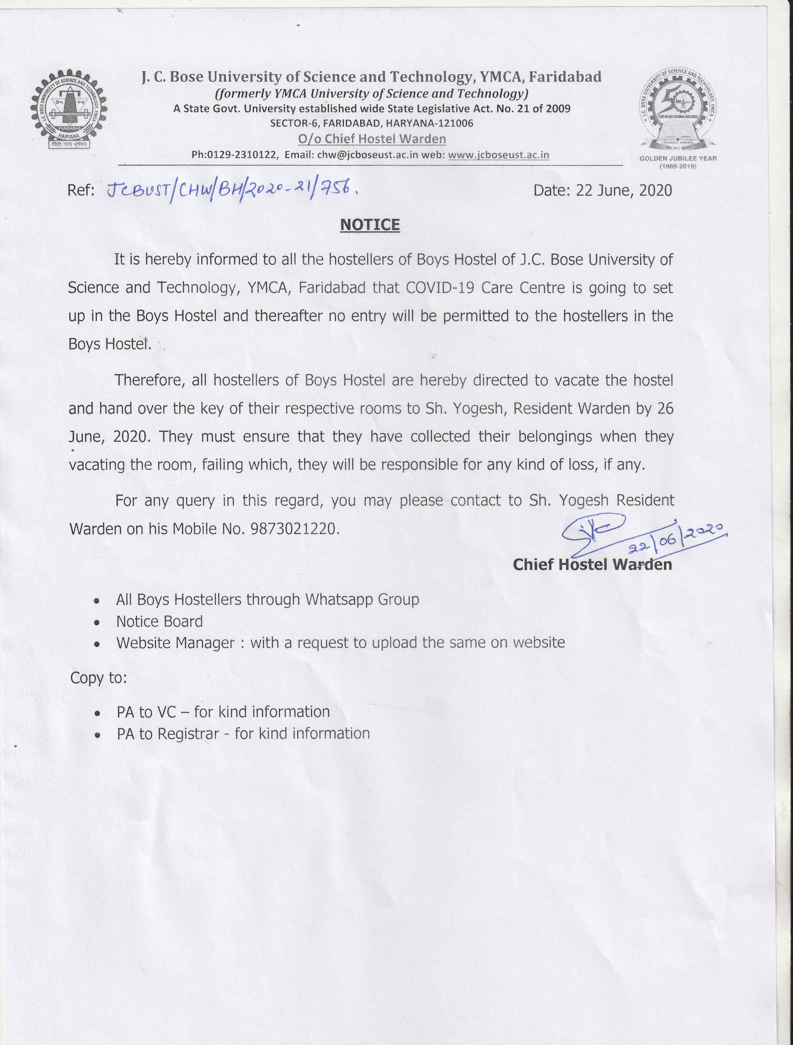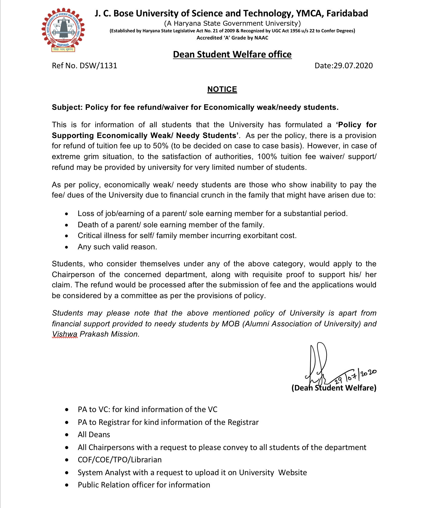 To keep original University I card by all students
