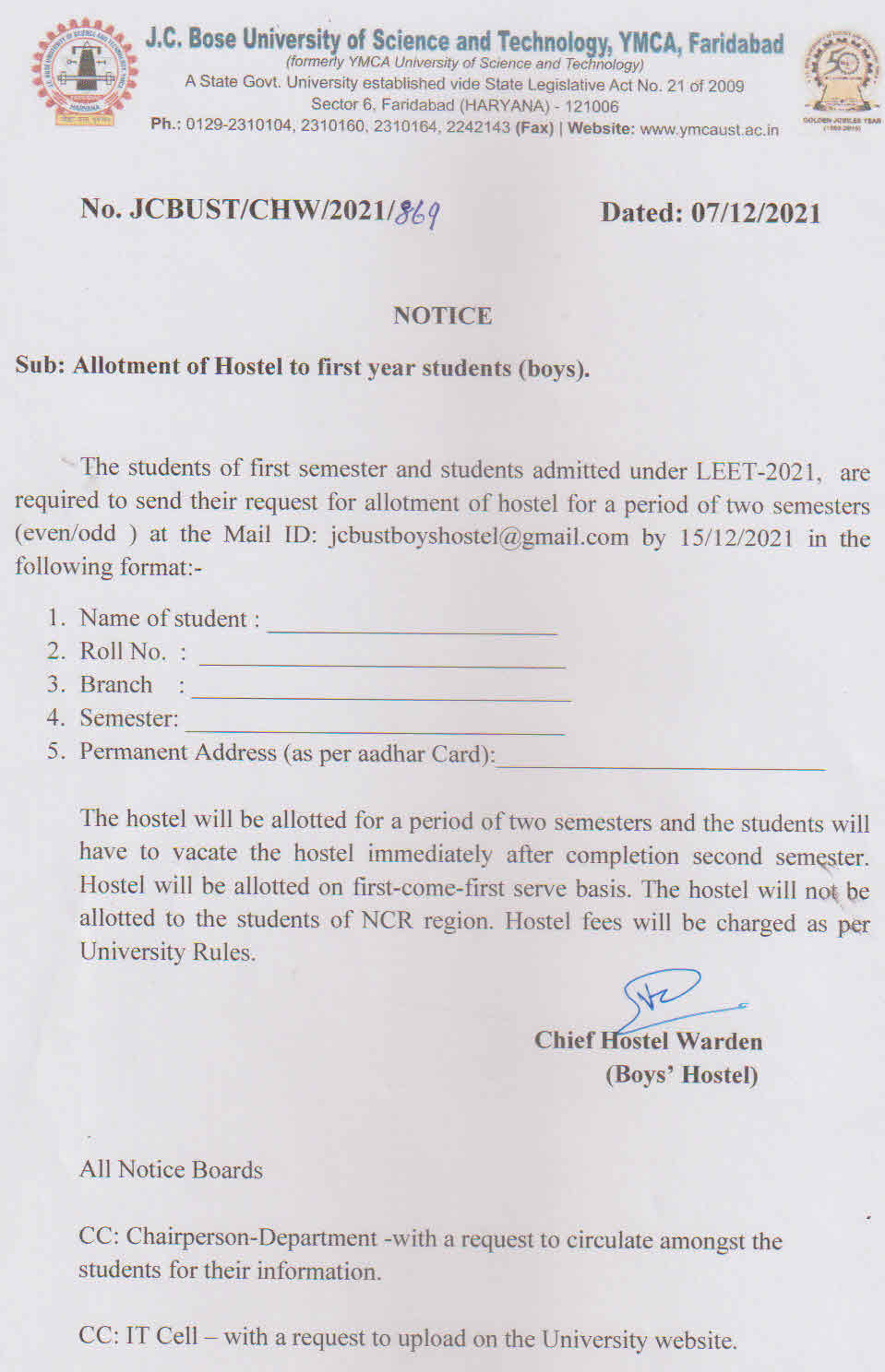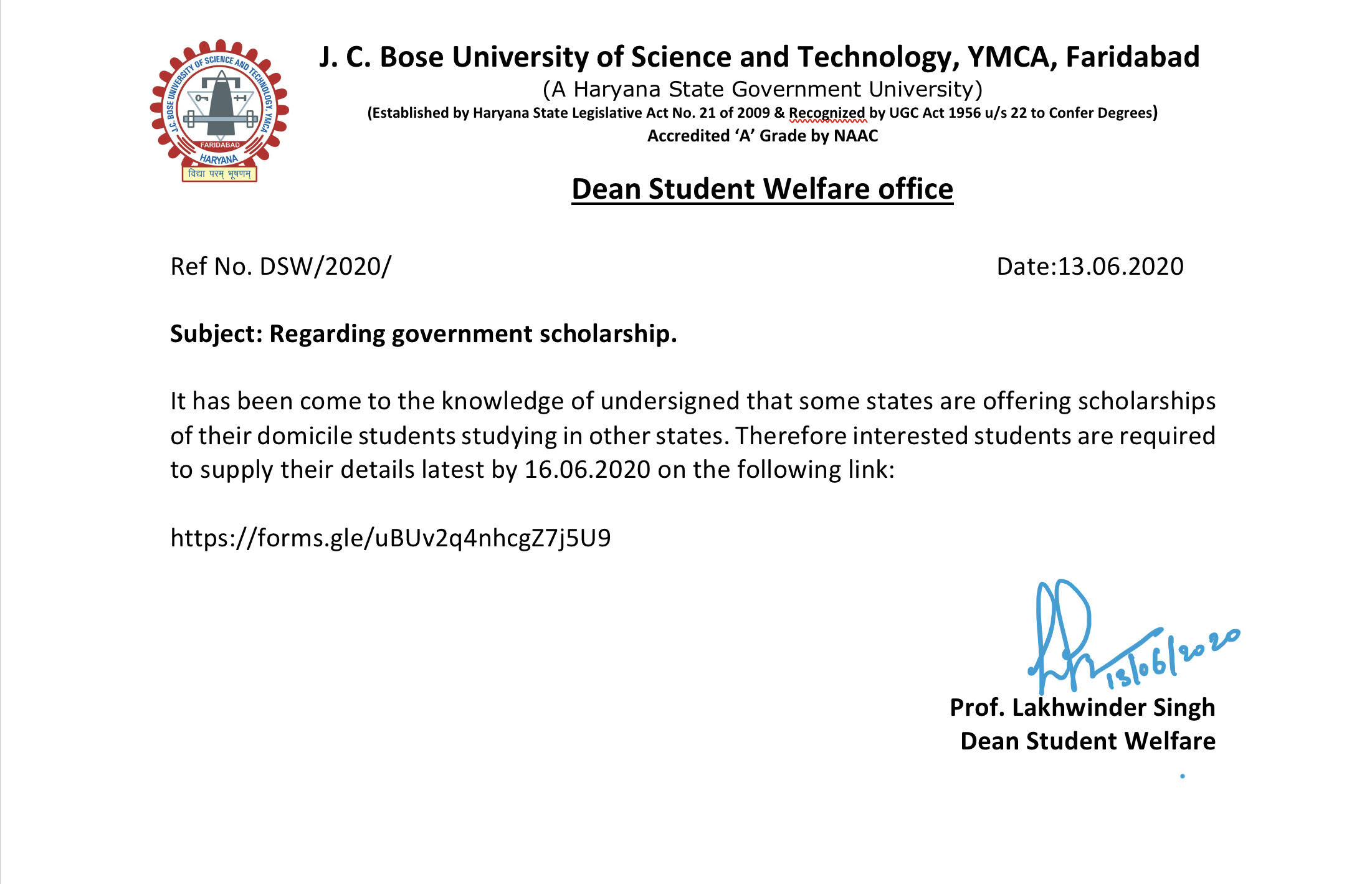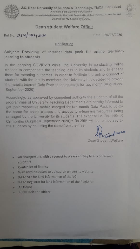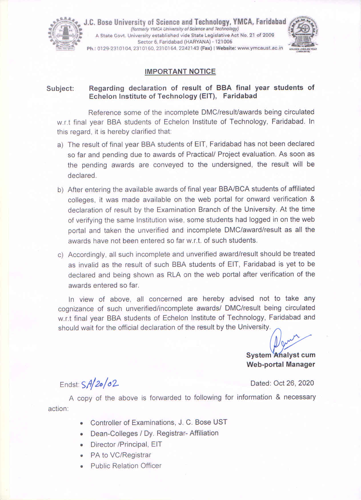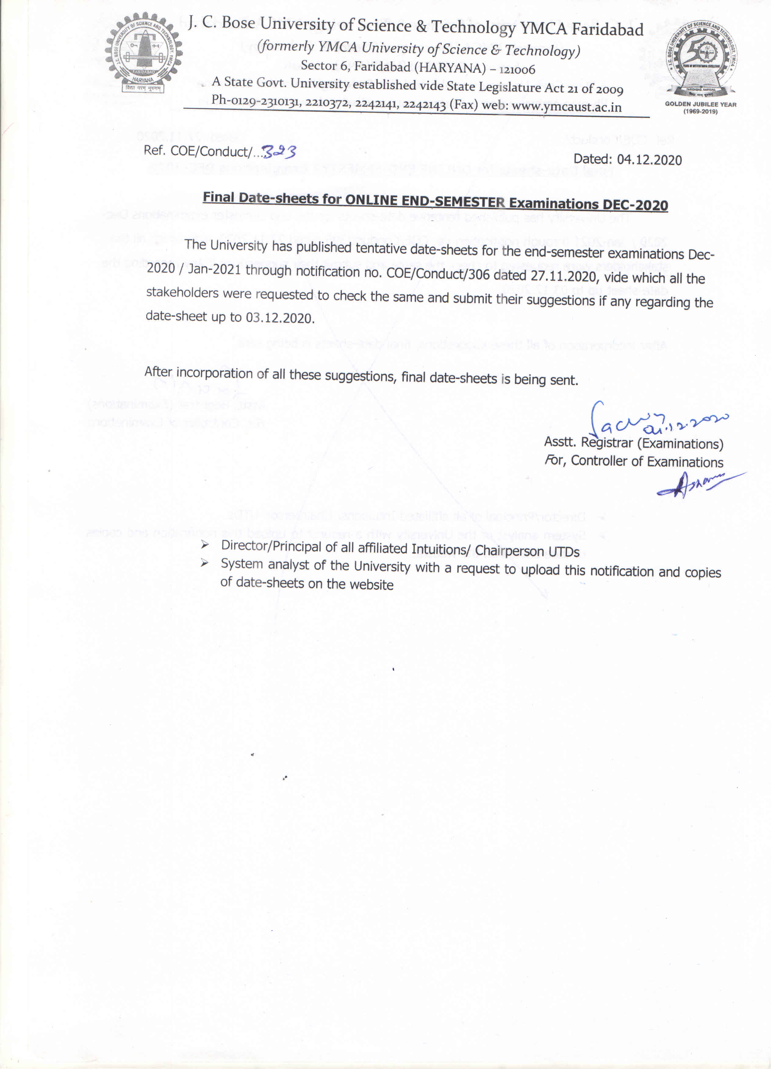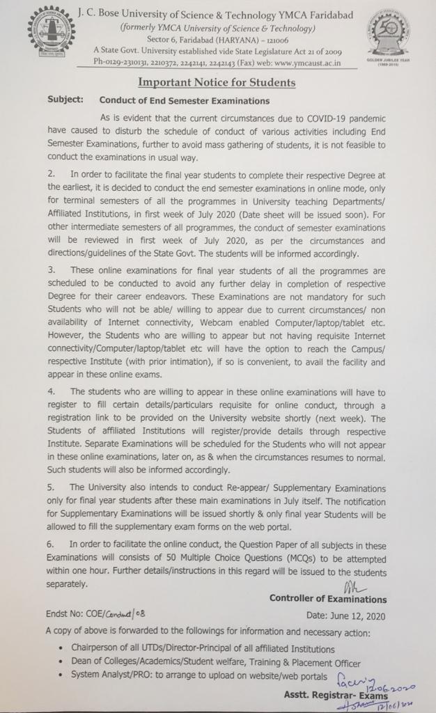 Notice regarding regular online exams forms