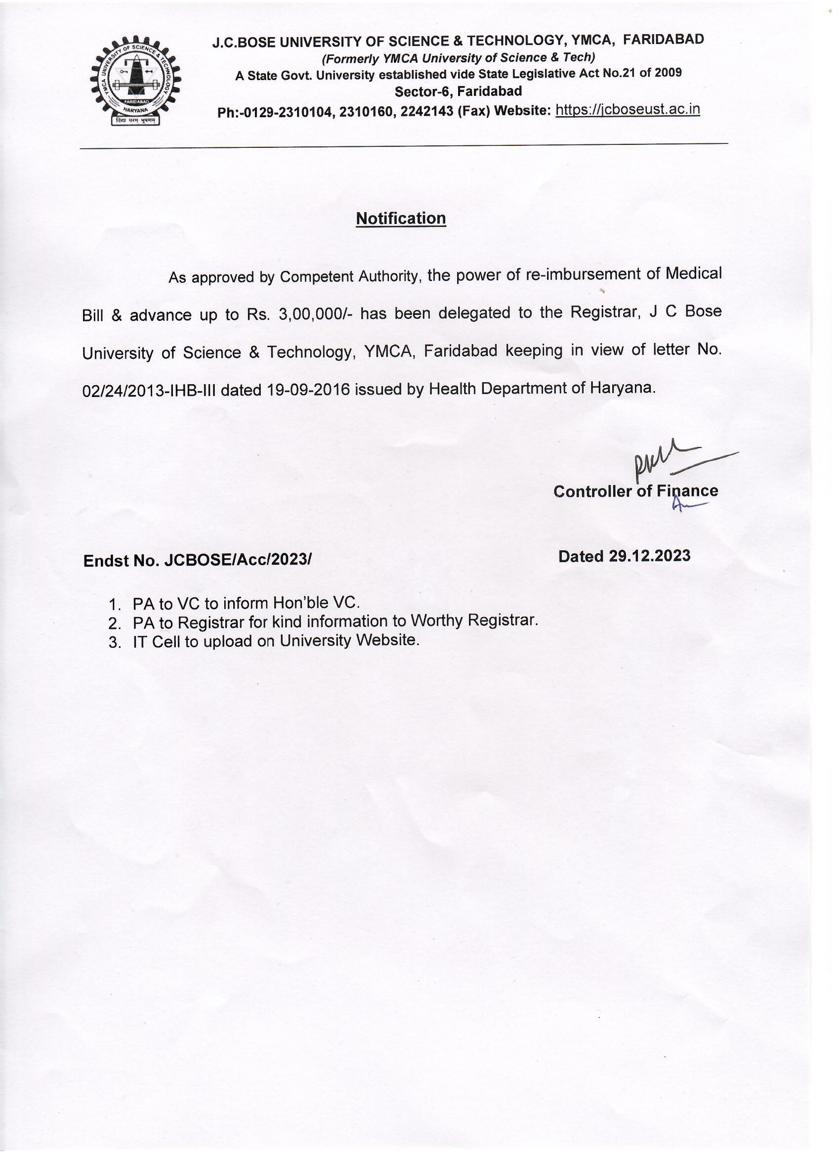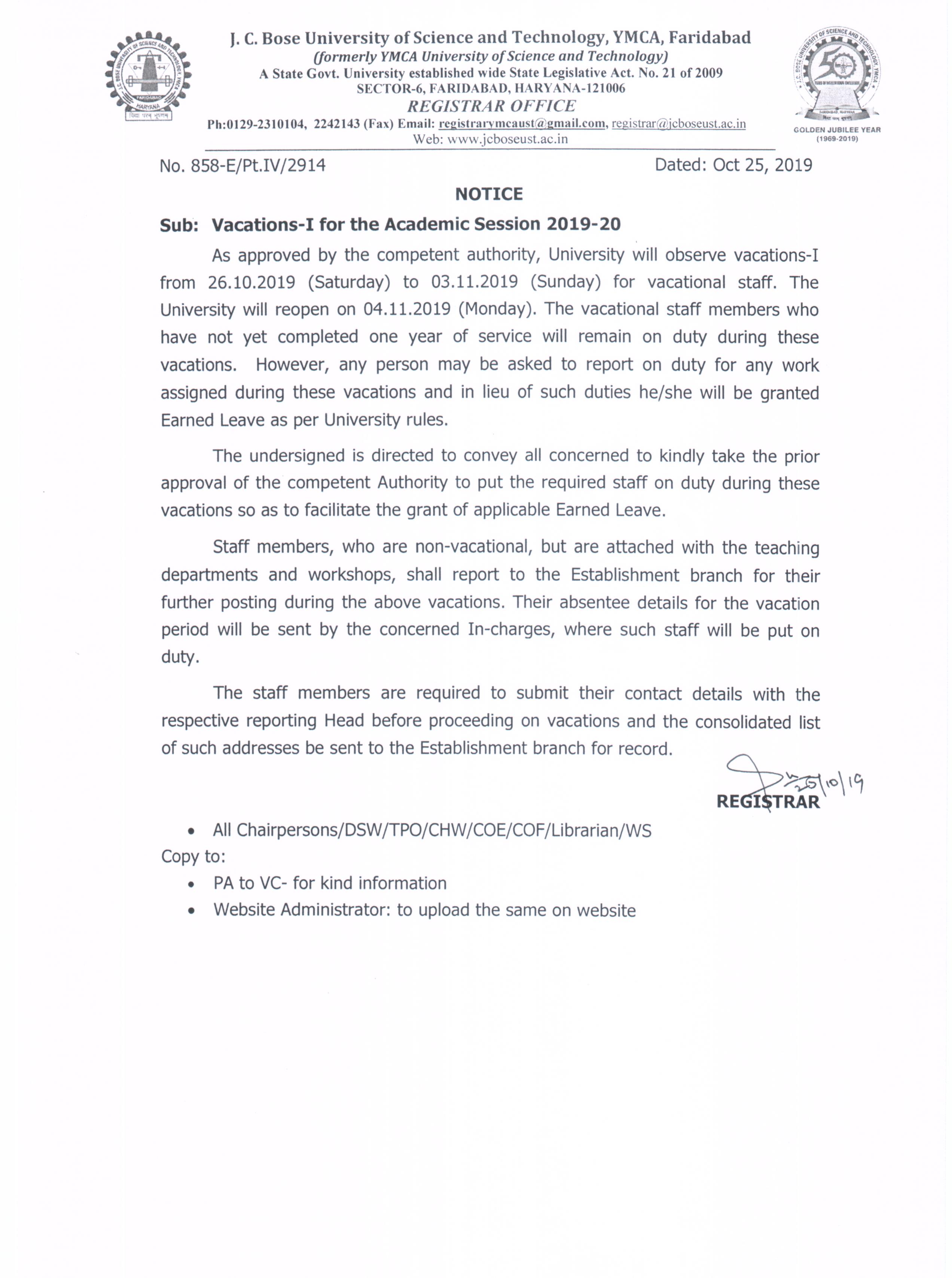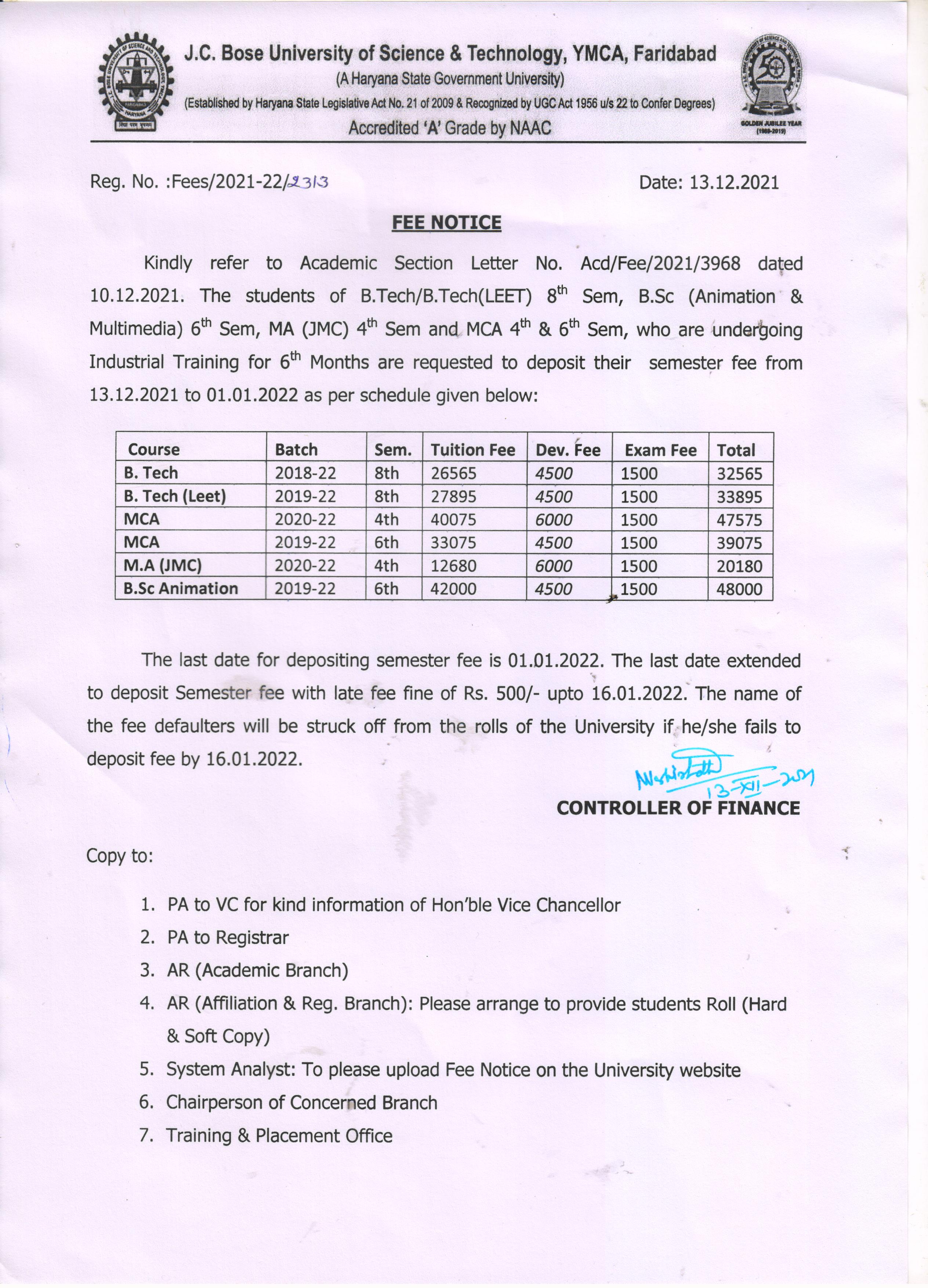Fee Notice for regular employees of the University (Ph.D. admission 2025-26)