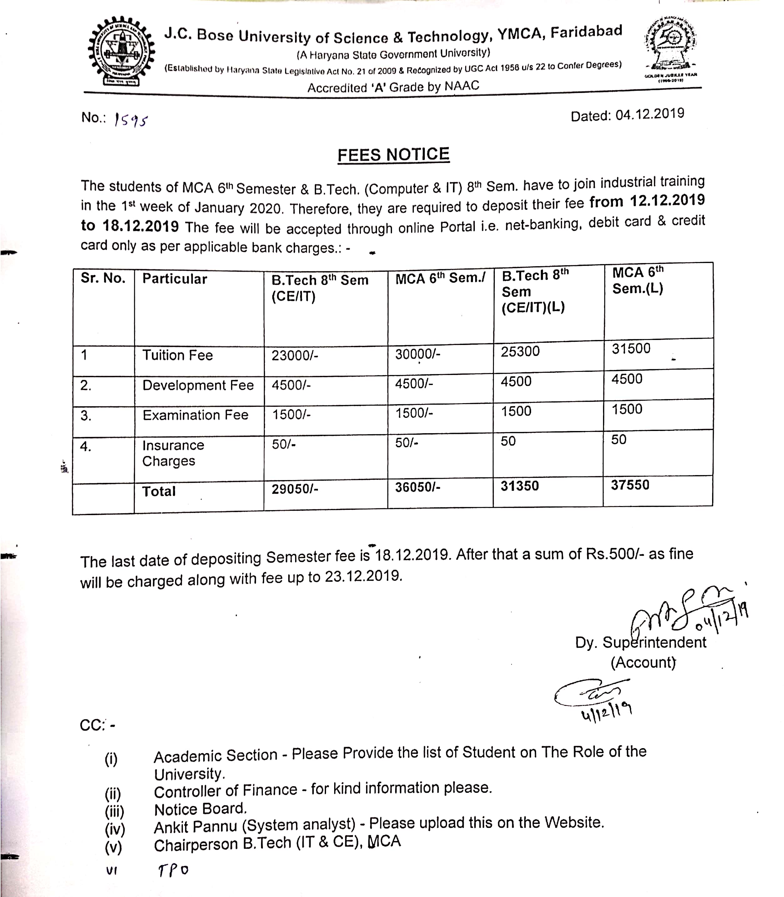 Extension of date and time of bid CE-04/COMPUTER (TEQIP-III)HR/YMCA/50