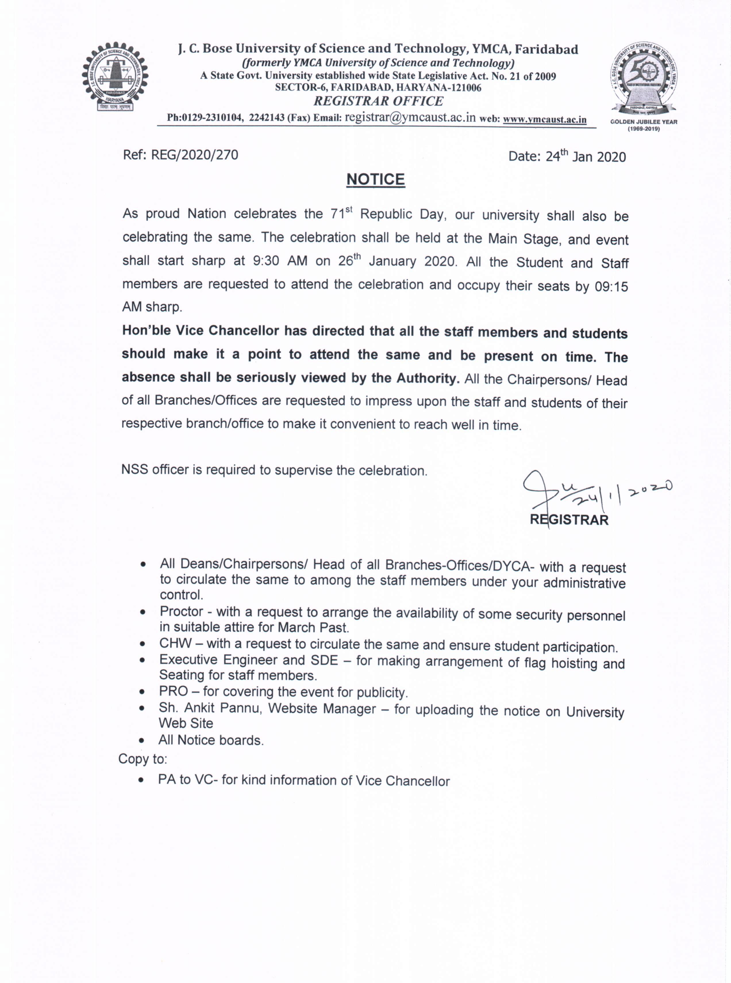Regarding parking of all kind of two/ four wheeler by all concerned staff/ faculty members