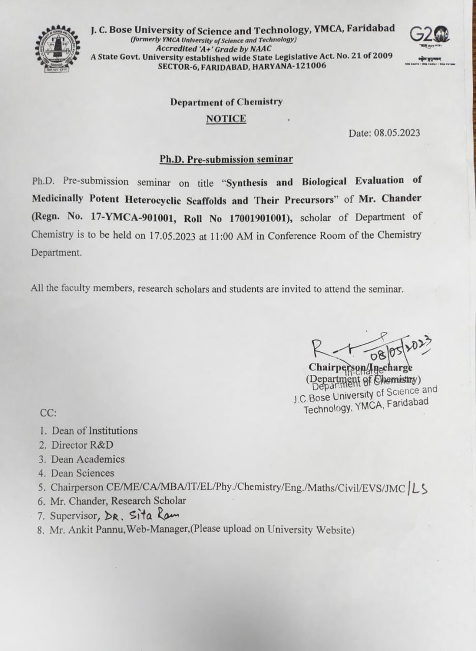 Notice for Pre-Ph.D submission of Mr.Sandeep Kumar Vishwakarma, Ph.D Scholar