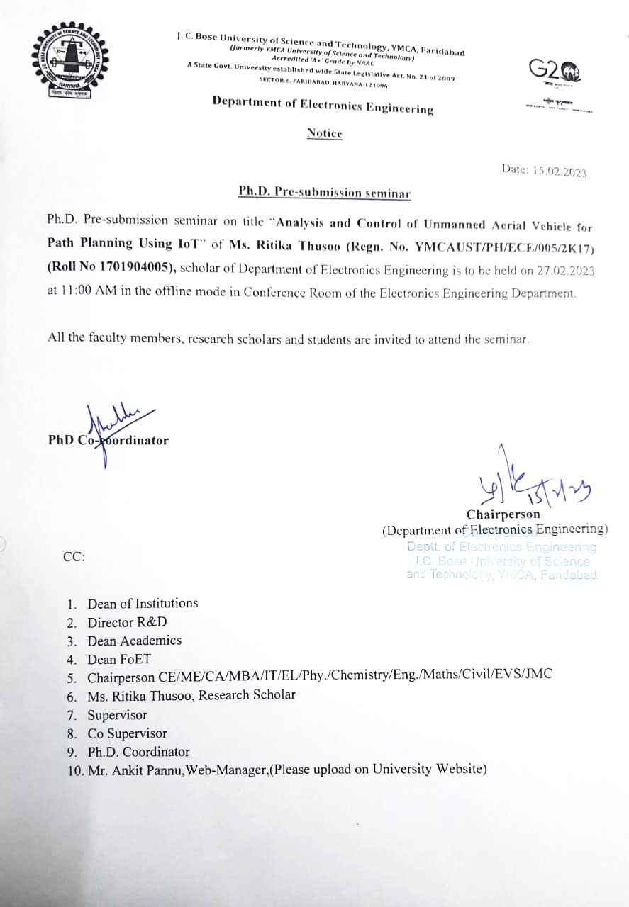 Conduct of pre-Ph.D submission seminar of Ms Aayushi Bansal, Regn No.19-YMCA-902014 on 16.01.2026