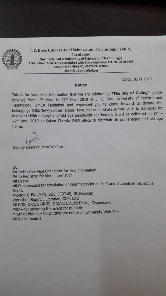 Whitewashing in different locations Creche Room, Group D-Flat No. 103 & Staff Room C-31 in J.C. Bose University of Science & Technology, YMCA Faridabad.