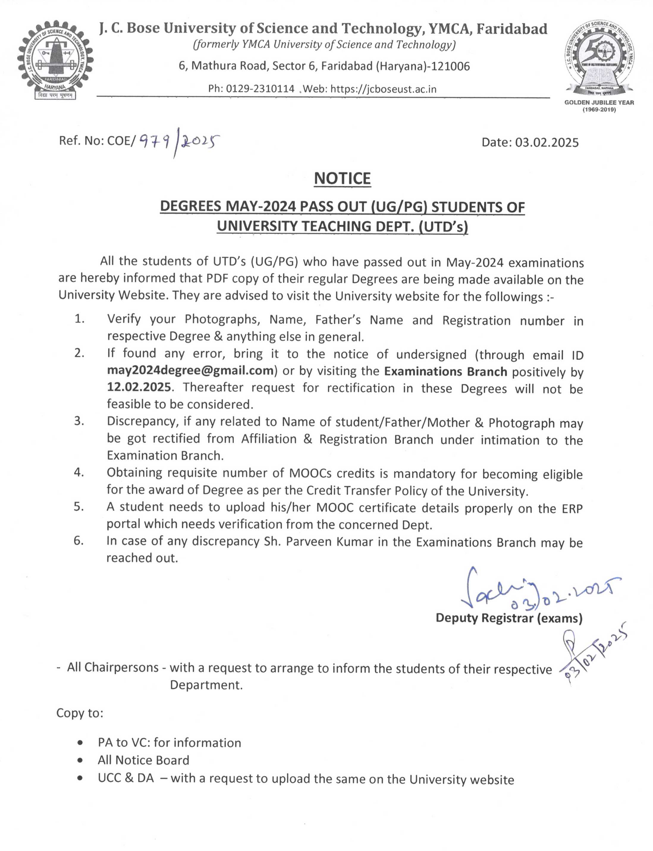 Draft Degrees May-2024 Pass Out UG/PG students of UTD's