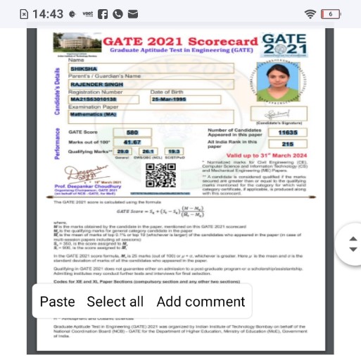 | 2021 | MA21S530042948 | Navdeep | GATE | |