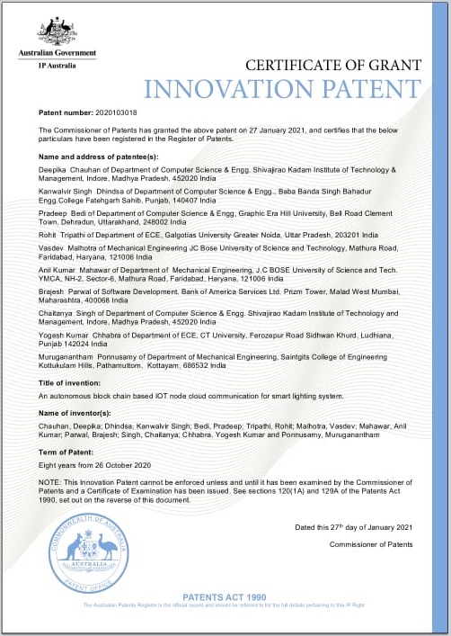 | 8 | Dr Bhupinder Singh, Dr Nitin Panwar & Dr Rajesh Attri | 446973-001 | SMART THERMAL MANAGEMENT SYSTEM FOR HIGH-PERFORMANCE MECHANICAL COMPONENTS | 05.02.2025 | View |