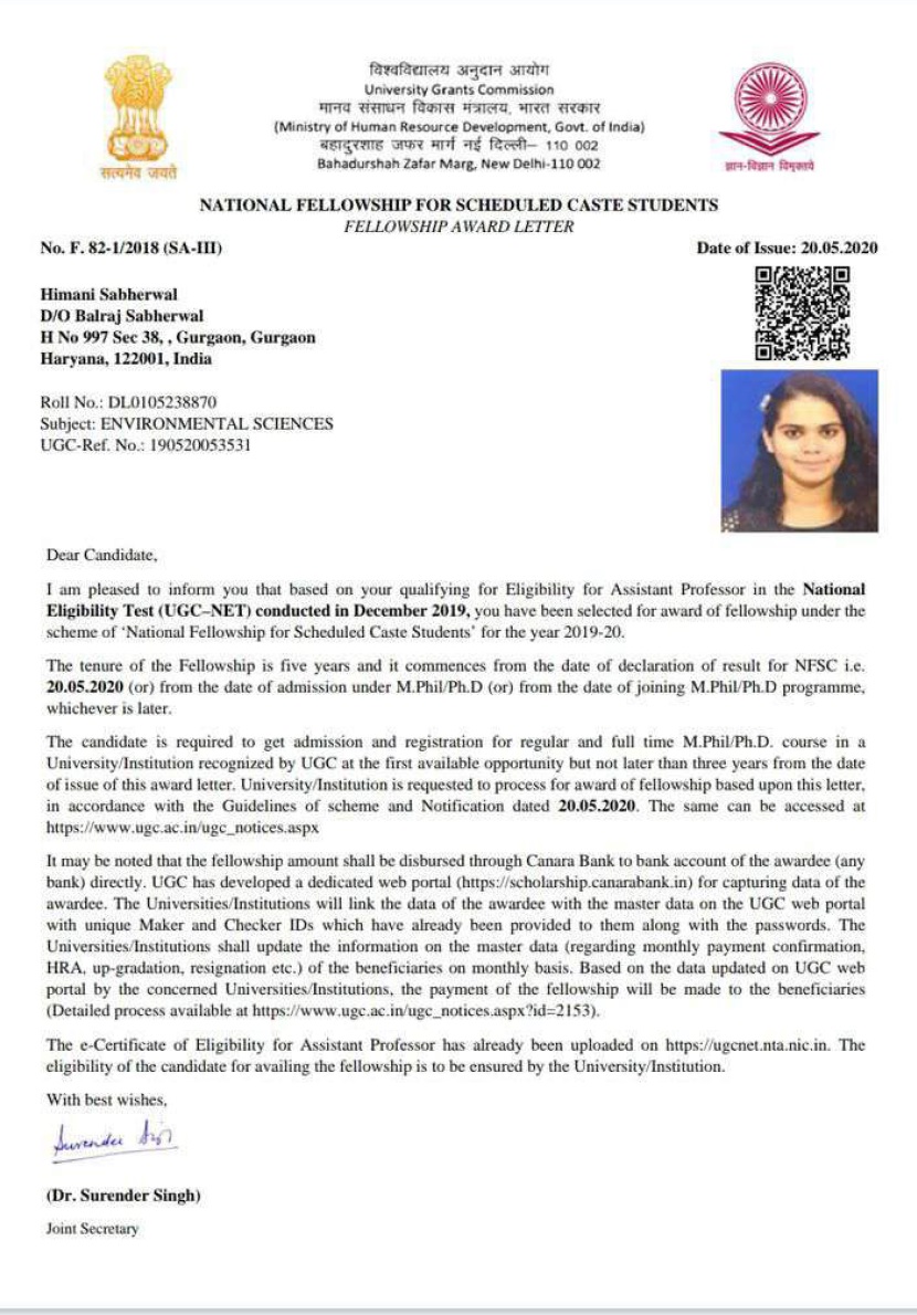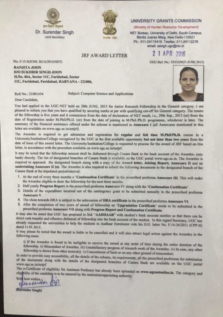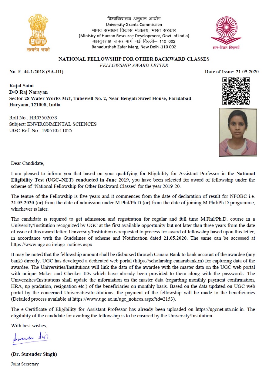 | 10 | Komal (MBA) | Jul-19 | 5 years | JRF | UGC | NET/JRF | View |