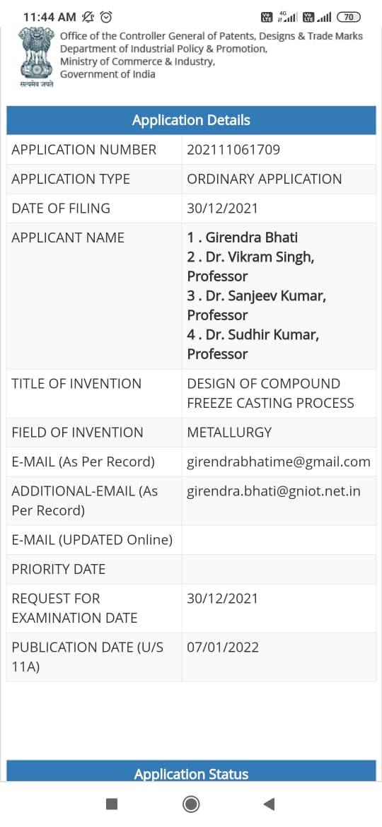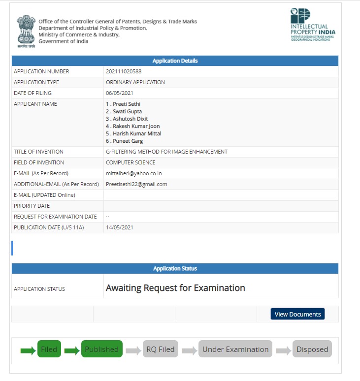 | 17 | Dr. Rashmi Agarwal | 202011044377 | Improved hybrid solar collector | 15.04.2022 | view/Download |